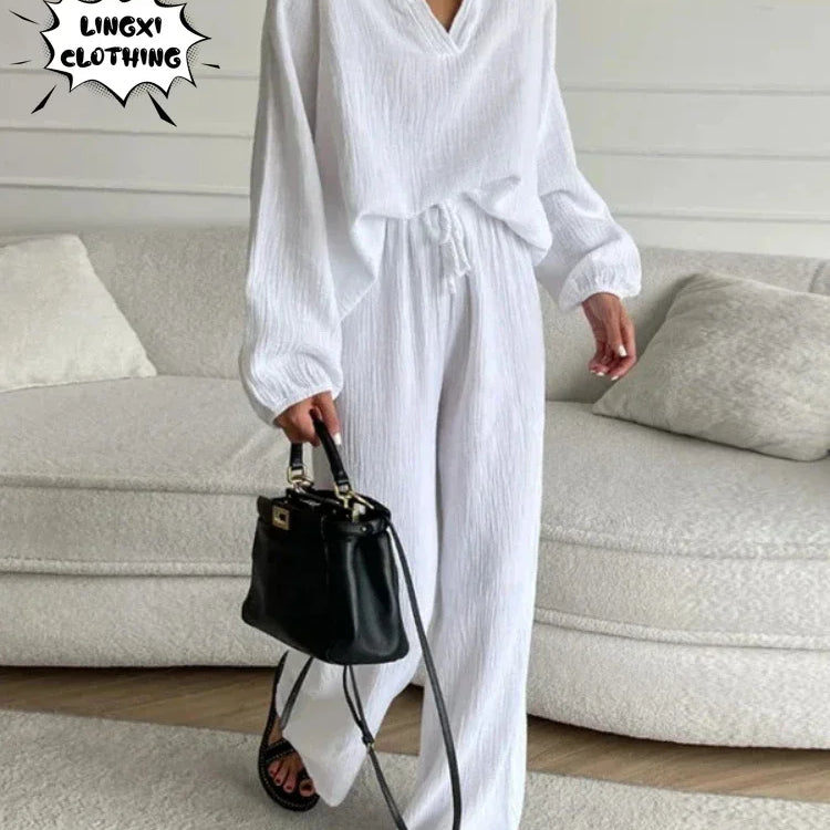 2024 Summer Fashion New Plus Size Women's Wear Set with Polo Collar Cotton Hemp Pants Elegant Solid Color Two Piece Set