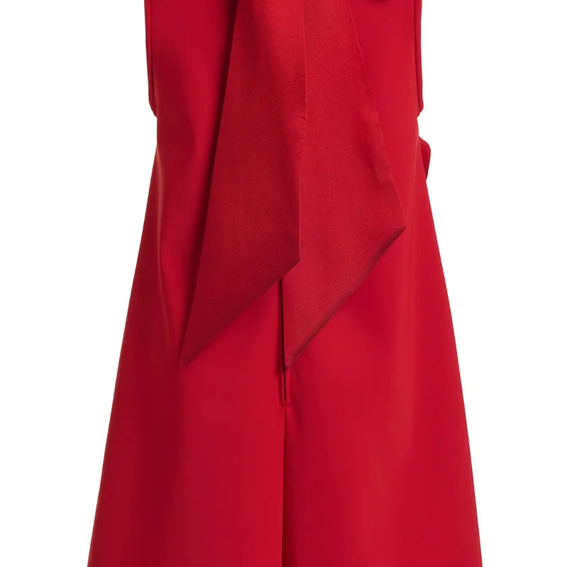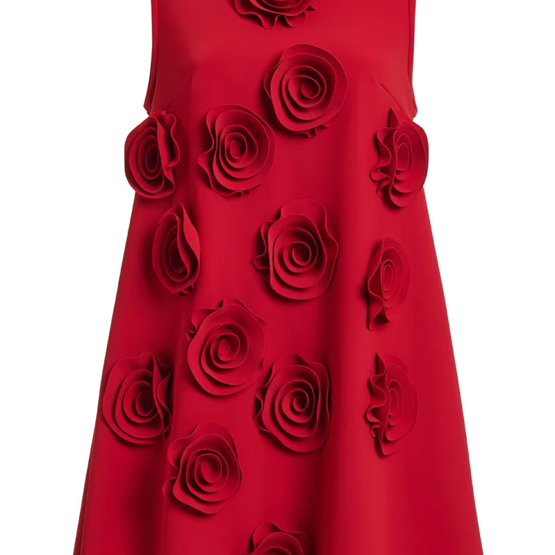 Vestido feminino de verão 2024, novo, vermelho, gola alta, com cadarço, design floral, sem mangas, tridimensional, elegante, moda festa