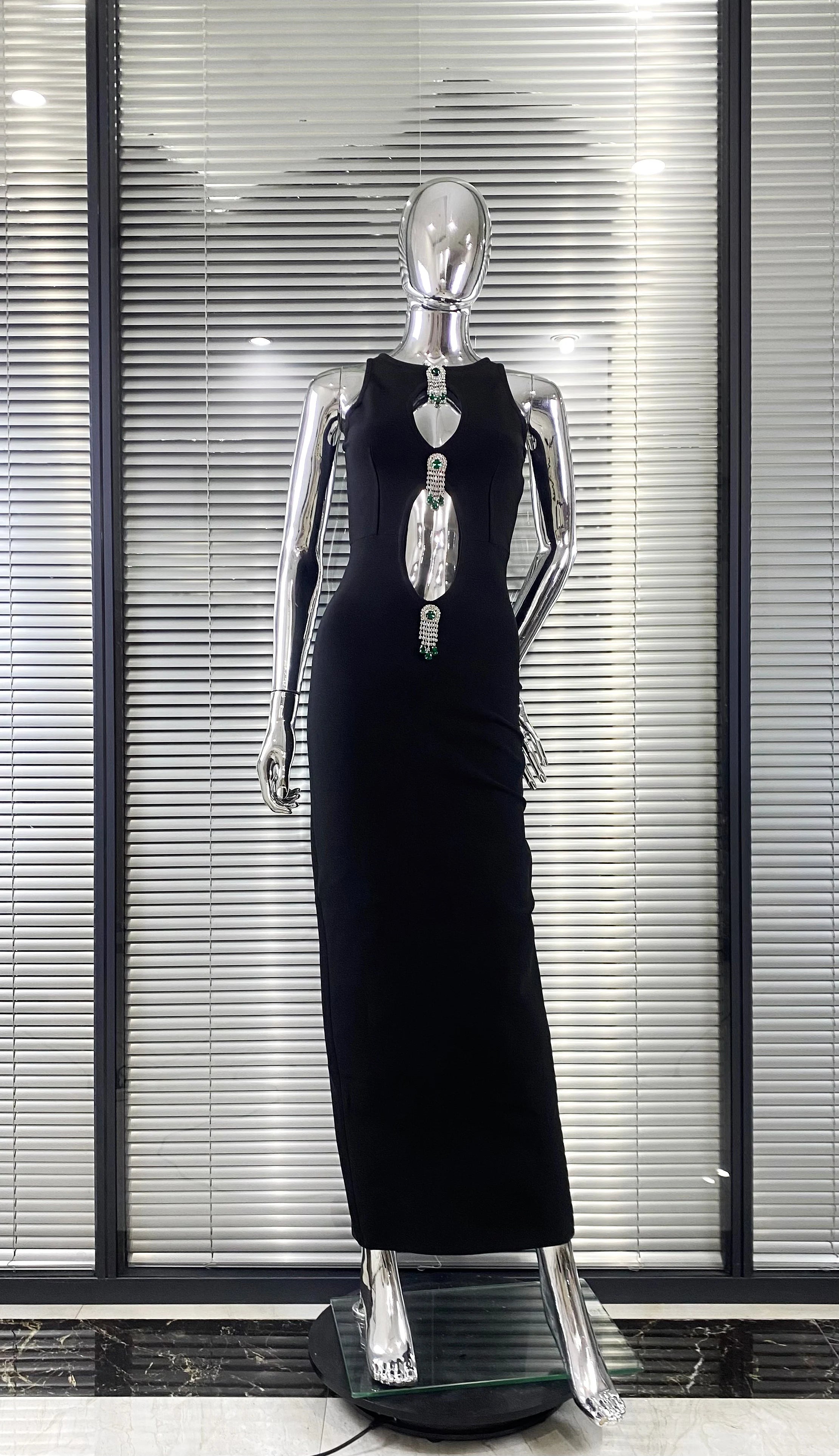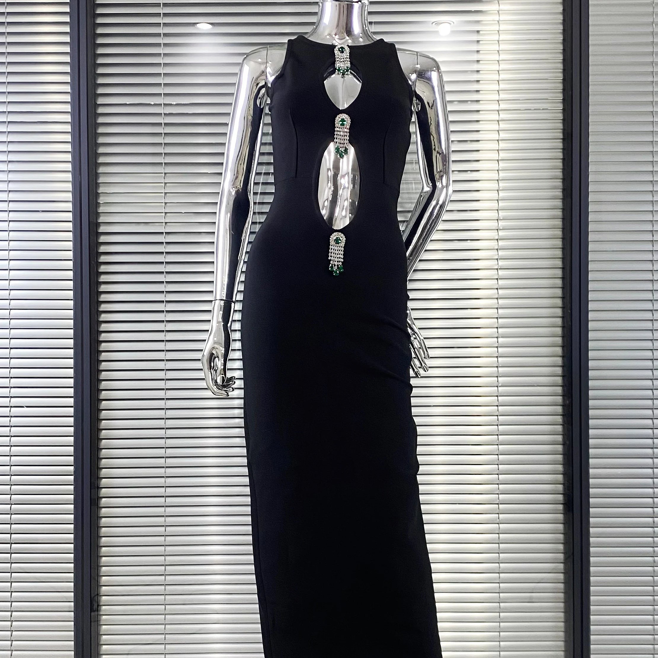2025 Luxury Diamonds Tassel Sexy hollow Out Black Bandage Dress Graceful Woman Evening Party Vestido Celebrate Party Outfit