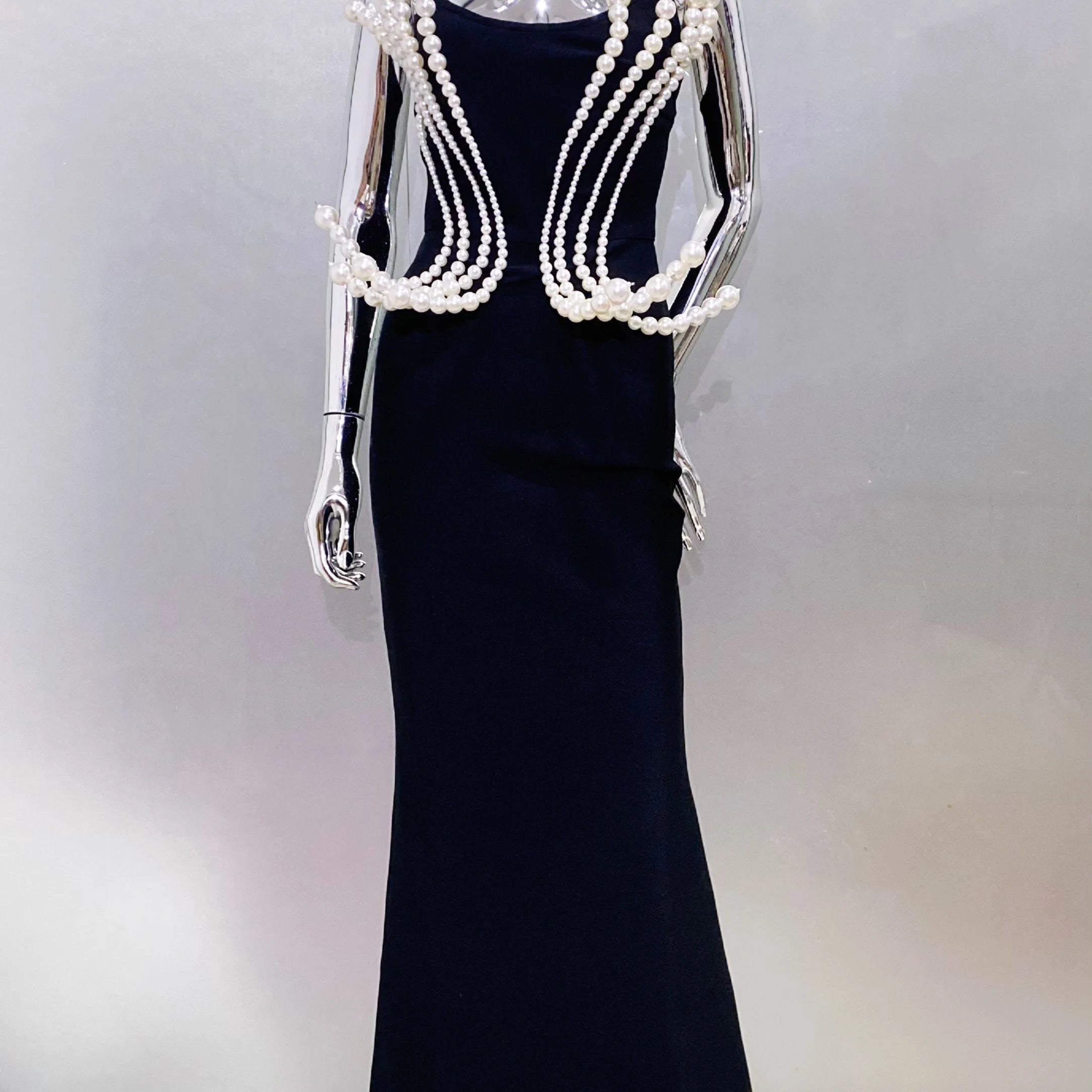 2025 Luxury Pearl Geometric Design strapless Package Hips Bandage Long Dress Elegant Woman Party Dress Celebrity Party Vestido