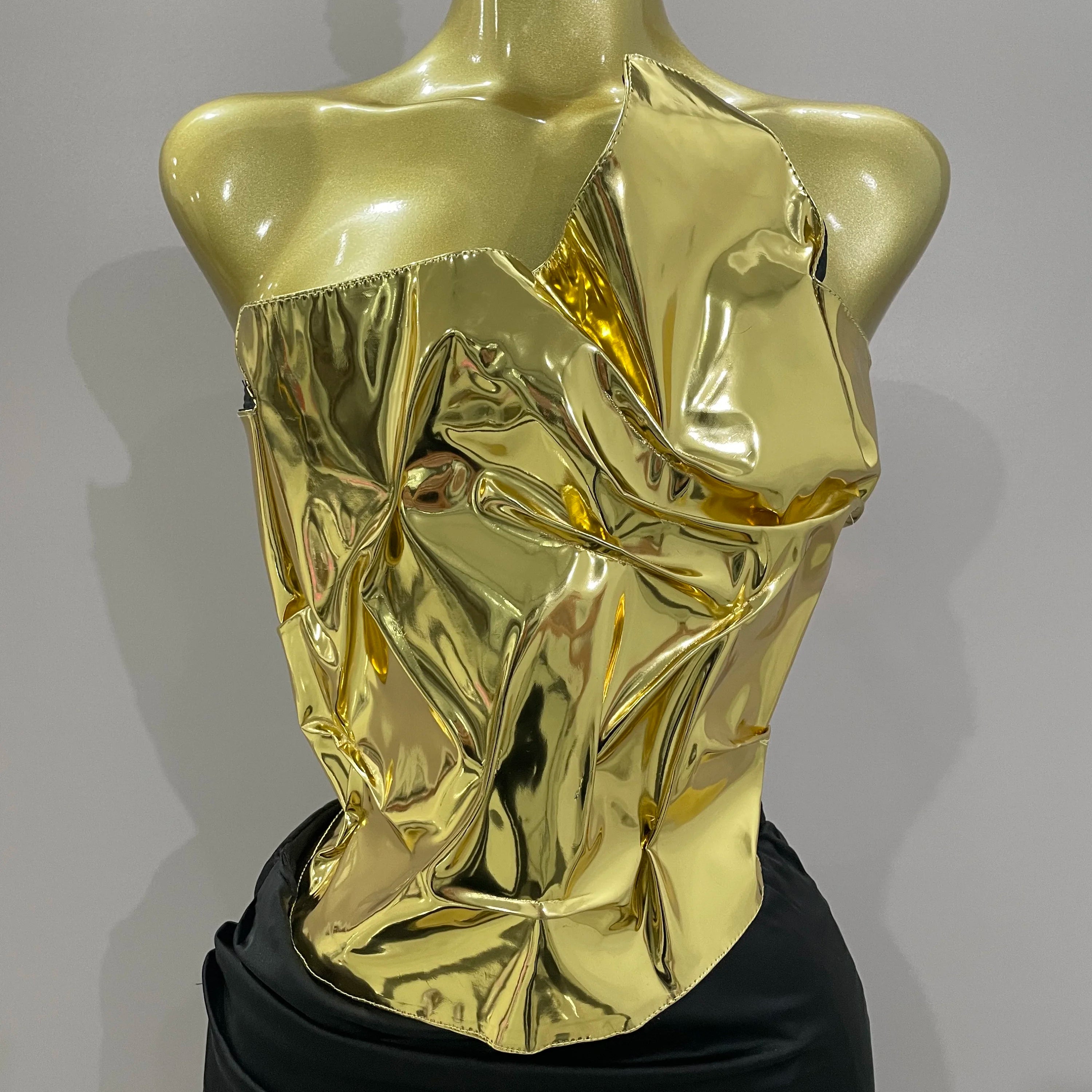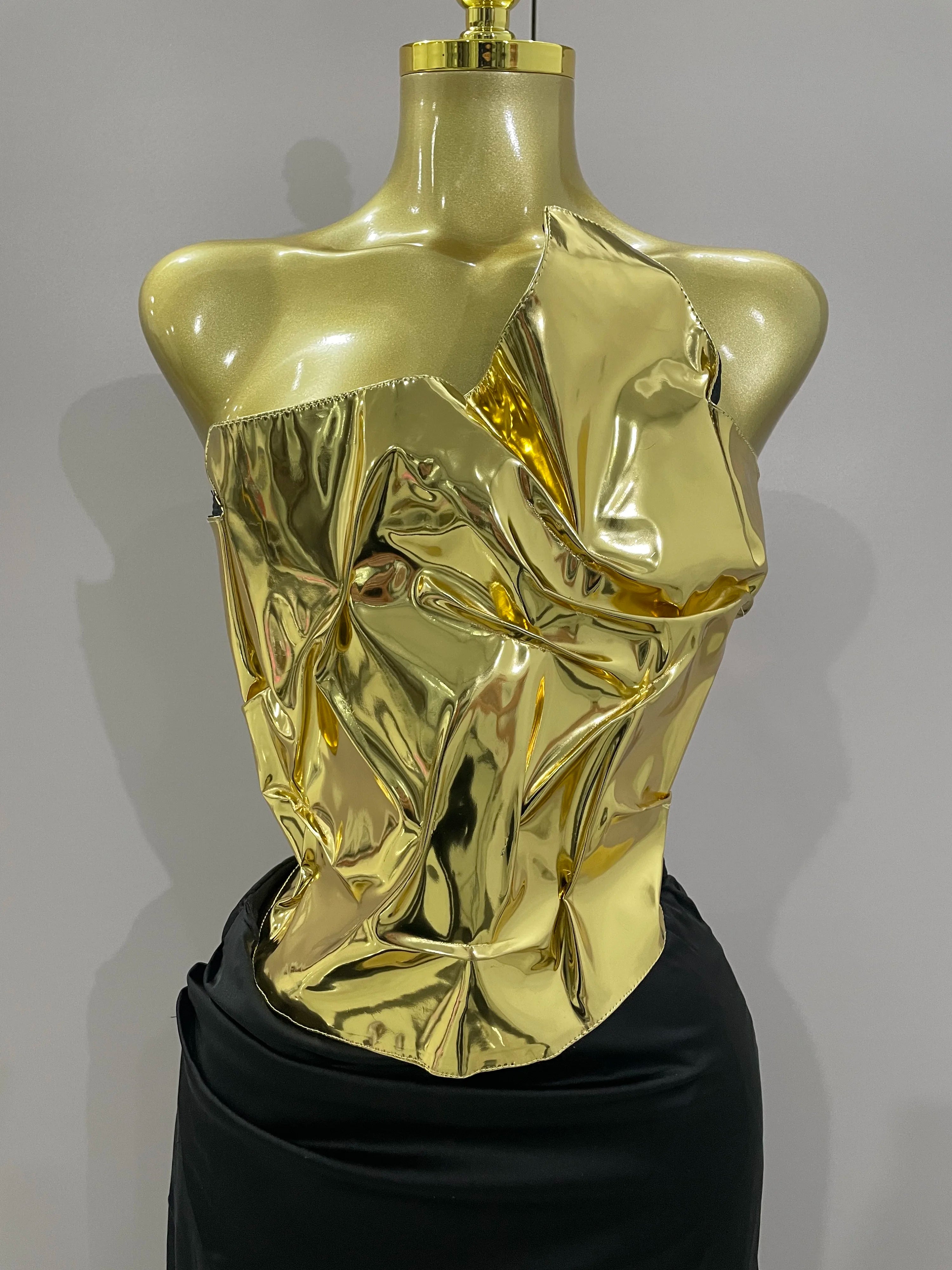 2025 Nova Chegada Cor Dourada Sexy Tops Com Cadarço Conjunto de 2 Peças Vestido Longo Feminino Comemore Festa À Noite Celebridade Vestido Elegante