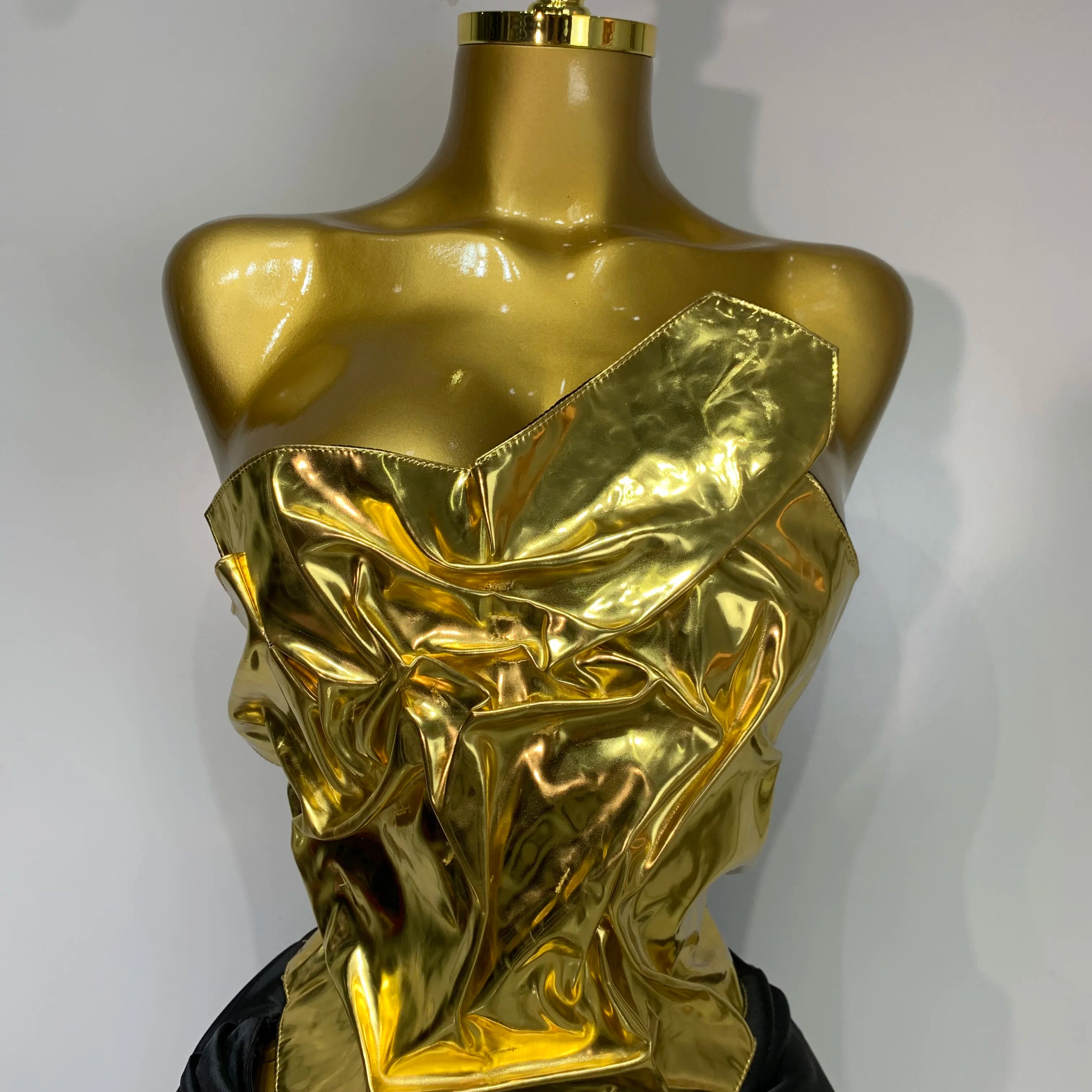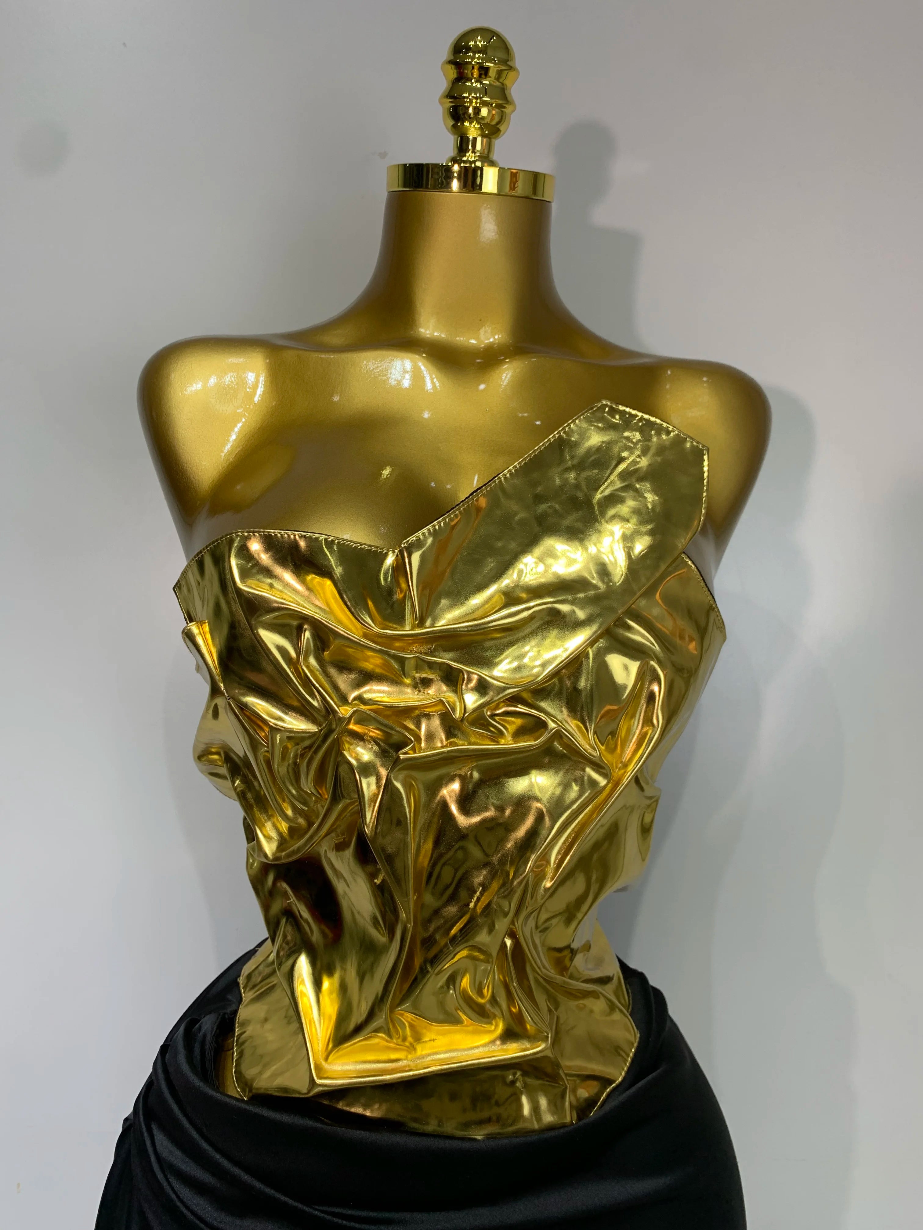 Chegada 2025 Mulheres Cor Dourada Sexy Tops Com Cadarço Conjunto de 2 Peças Vestido Longo Comemore Festa À Noite Celebridade Vestido Elegante