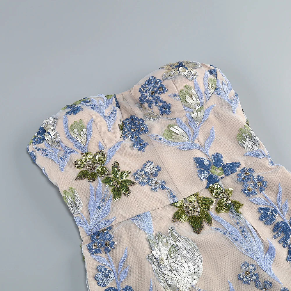 Vestido longo bordado sem alças sensual 2025, moda feminina, festa noturna, aniversário, roupa