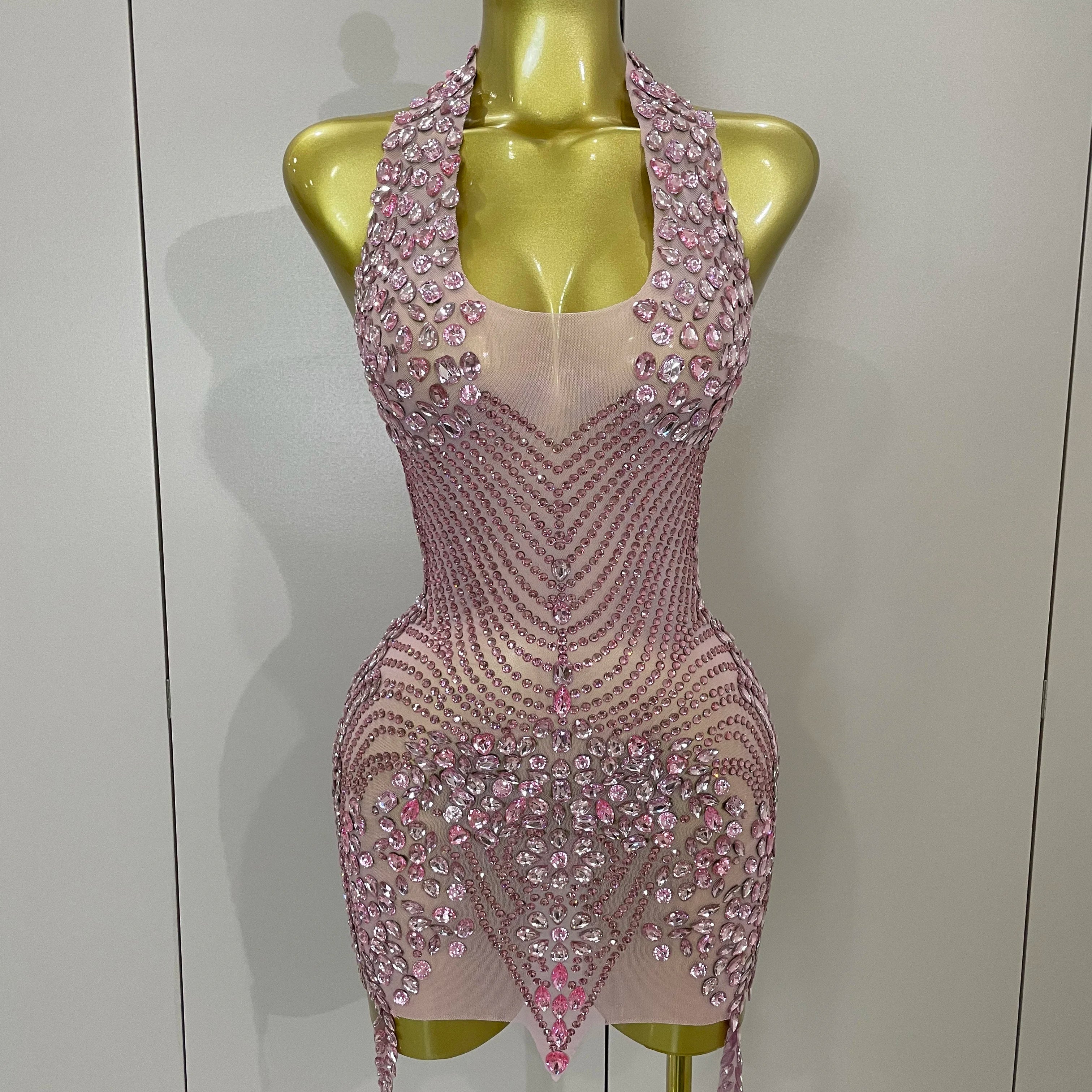 Novo vestido curto de veludo com strass brilhantes e sexy 2025, costas nuas, malha, baile de formatura, comemoração de aniversário, festa, palco