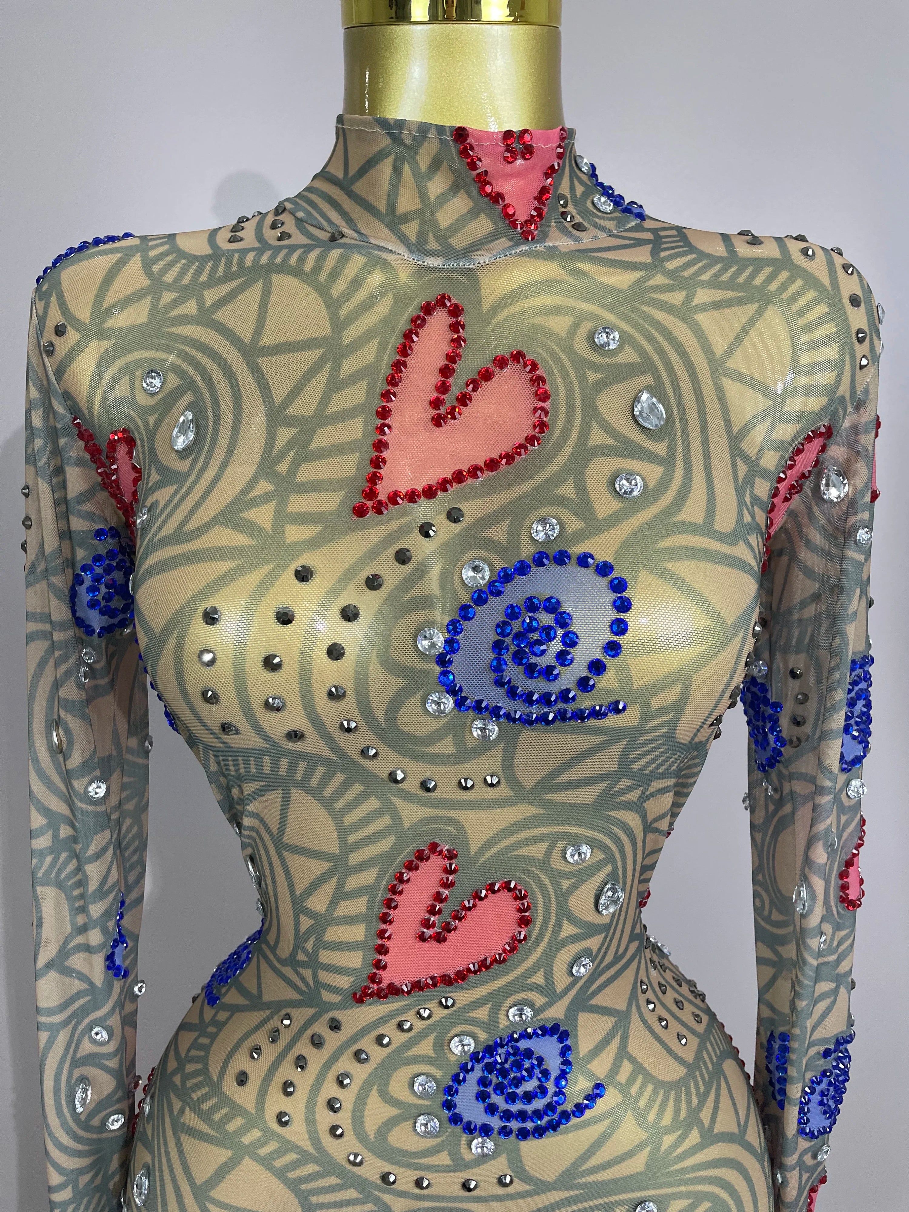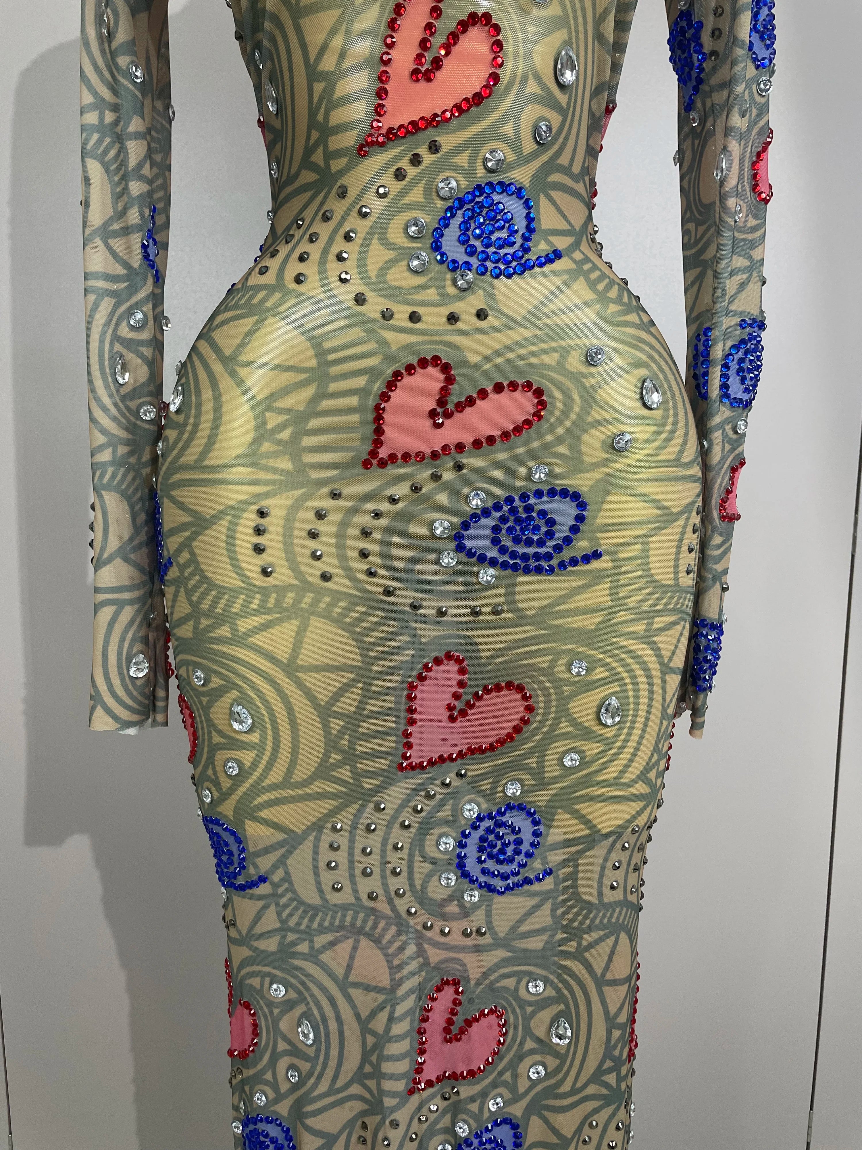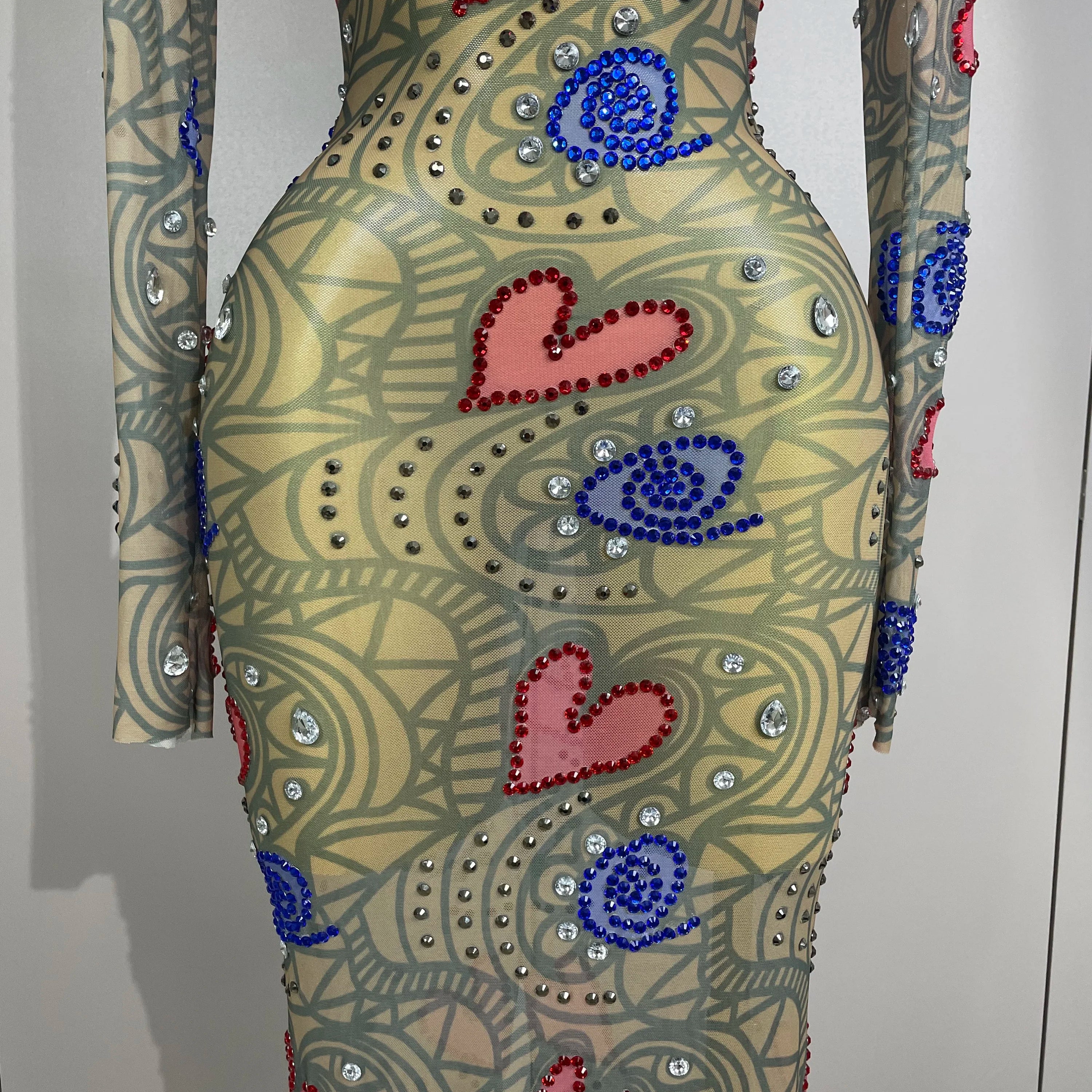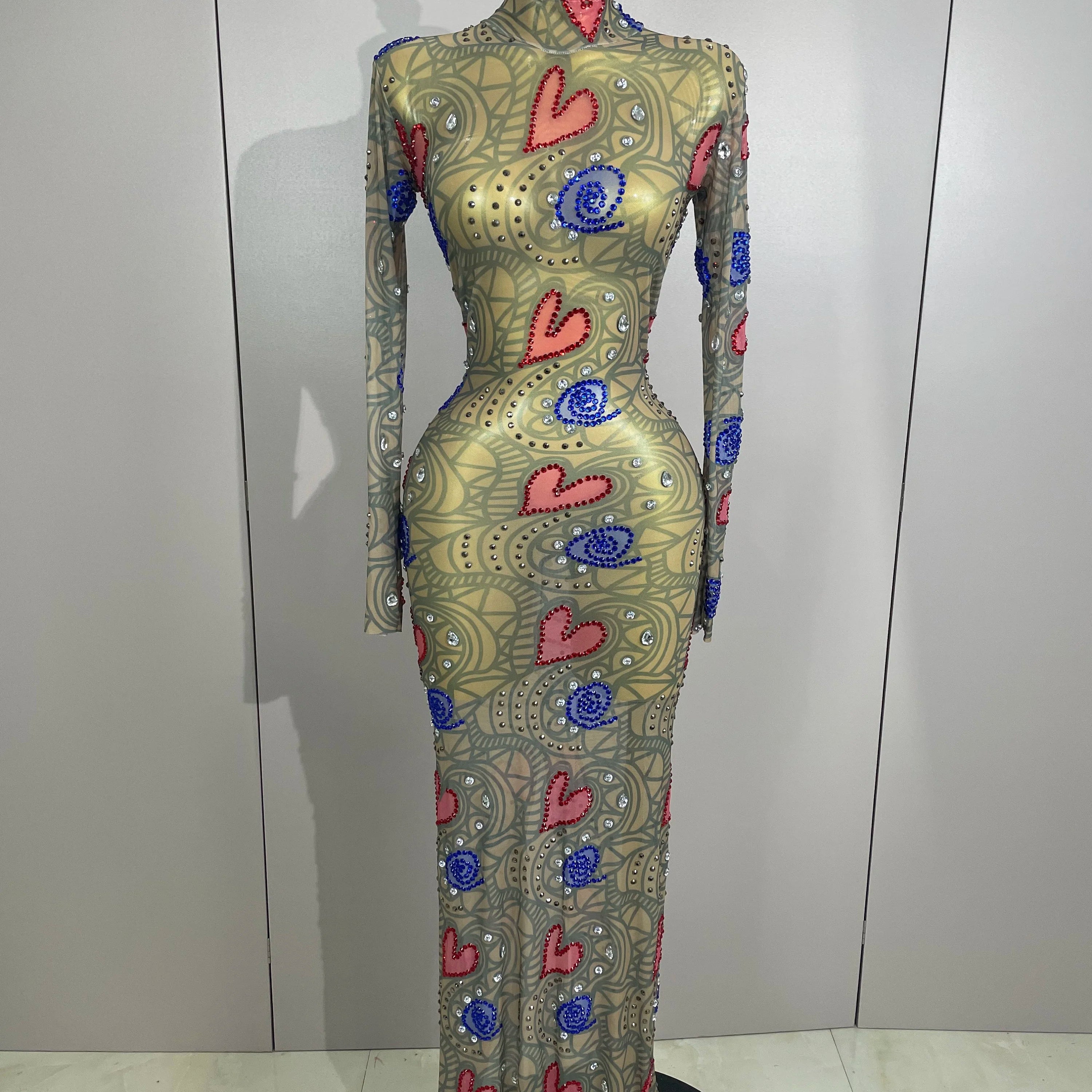 2025 Novo Diamante Brilhante Gola Alta Sexy Malha Envoltório Quadril Vestido Longo Anfitrião Reunião Anual Festa Boate Bar Performance Traje