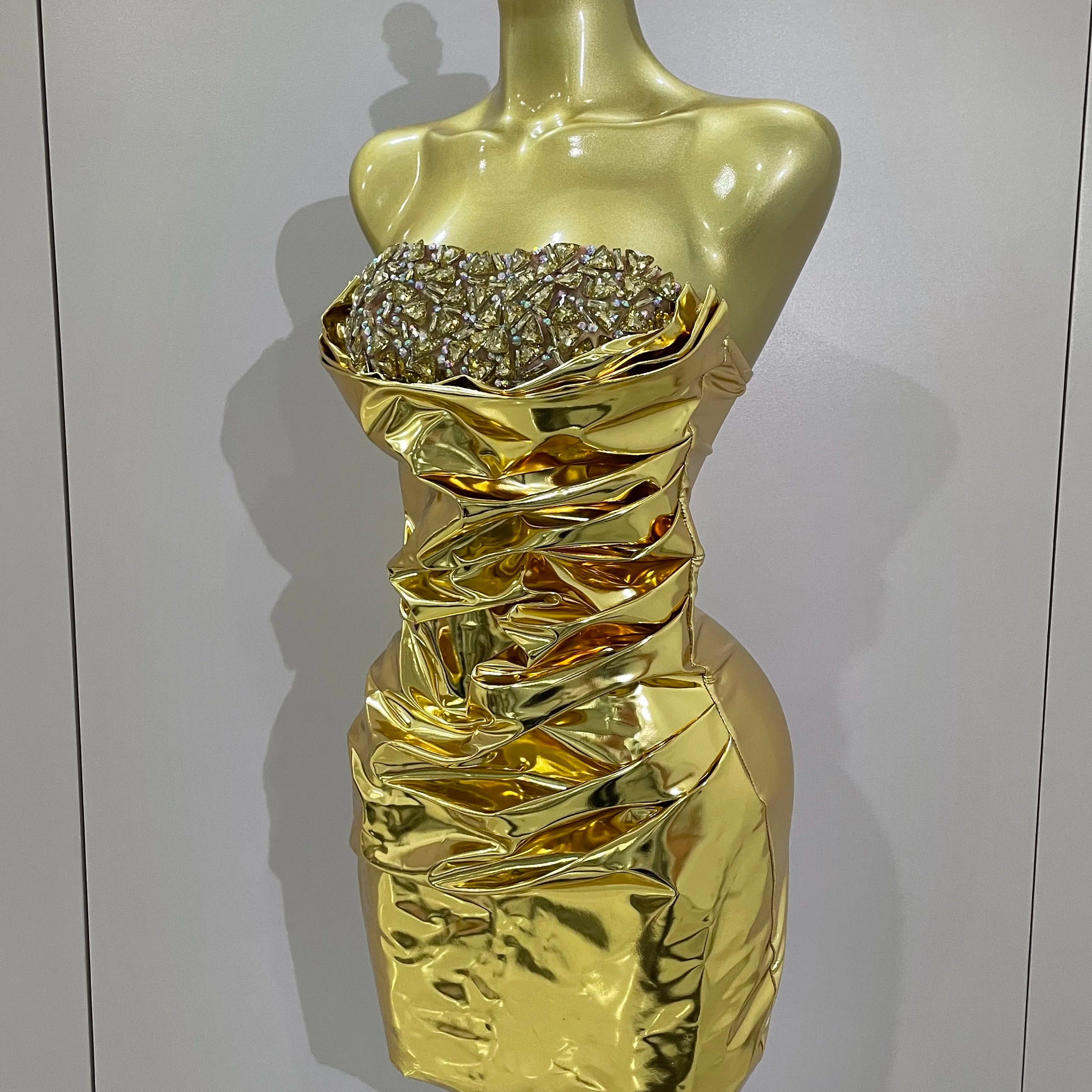 2025 Novos Diamantes Brilhantes Cristal Sexy Malha Transparente Bodycon Mini Vestido Feminino Festa de Aniversário Comemoração Performance Traje