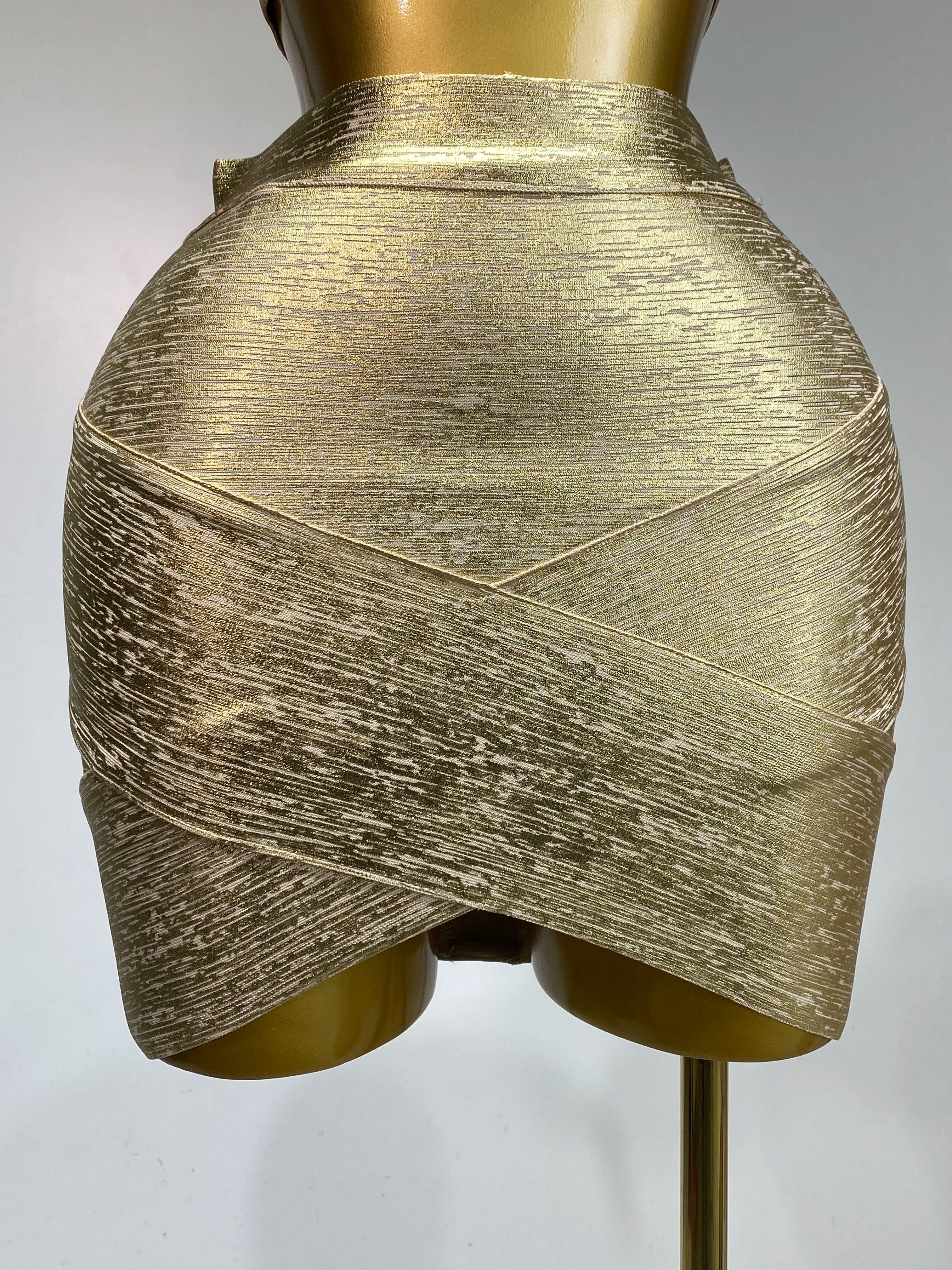 Conjunto de duas peças de bandagem dourada sexy de verão 2025, feminino, charmoso, celebridade, saia justa, vestido de aniversário para clube
