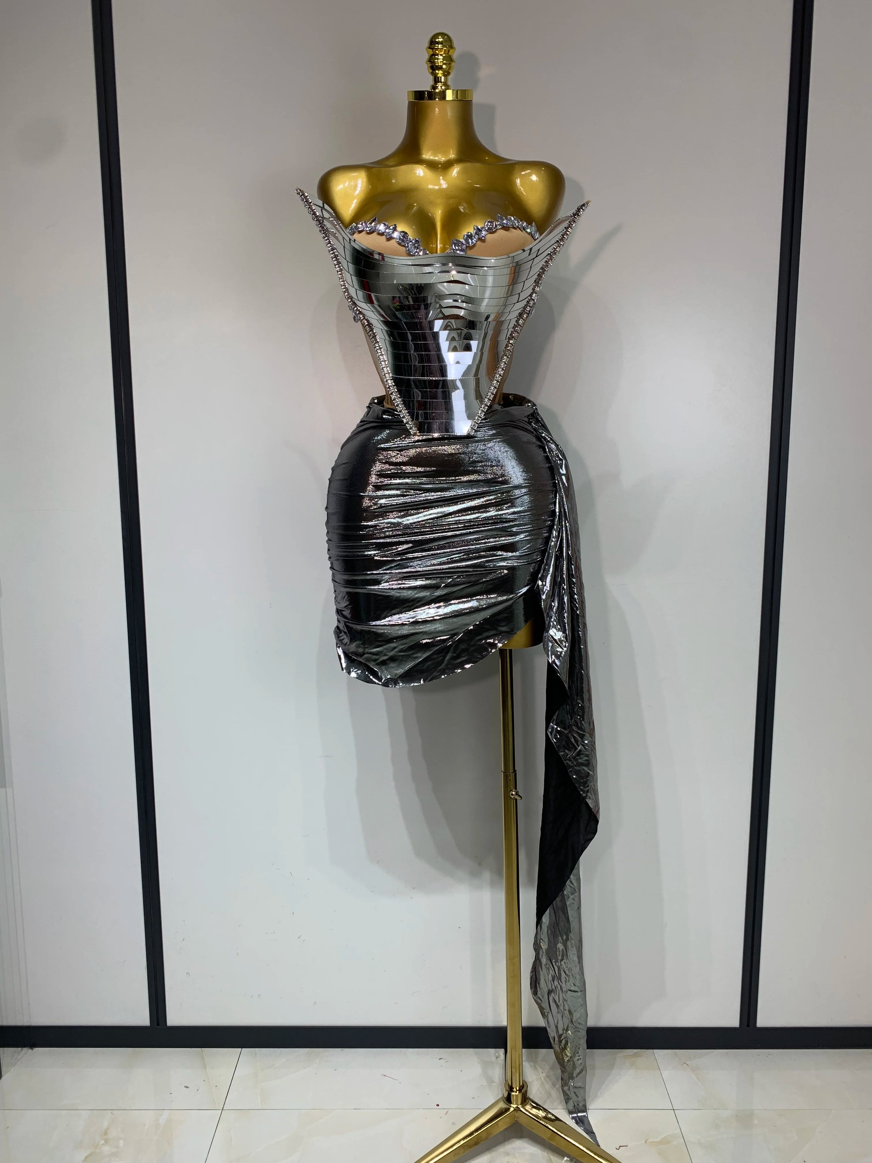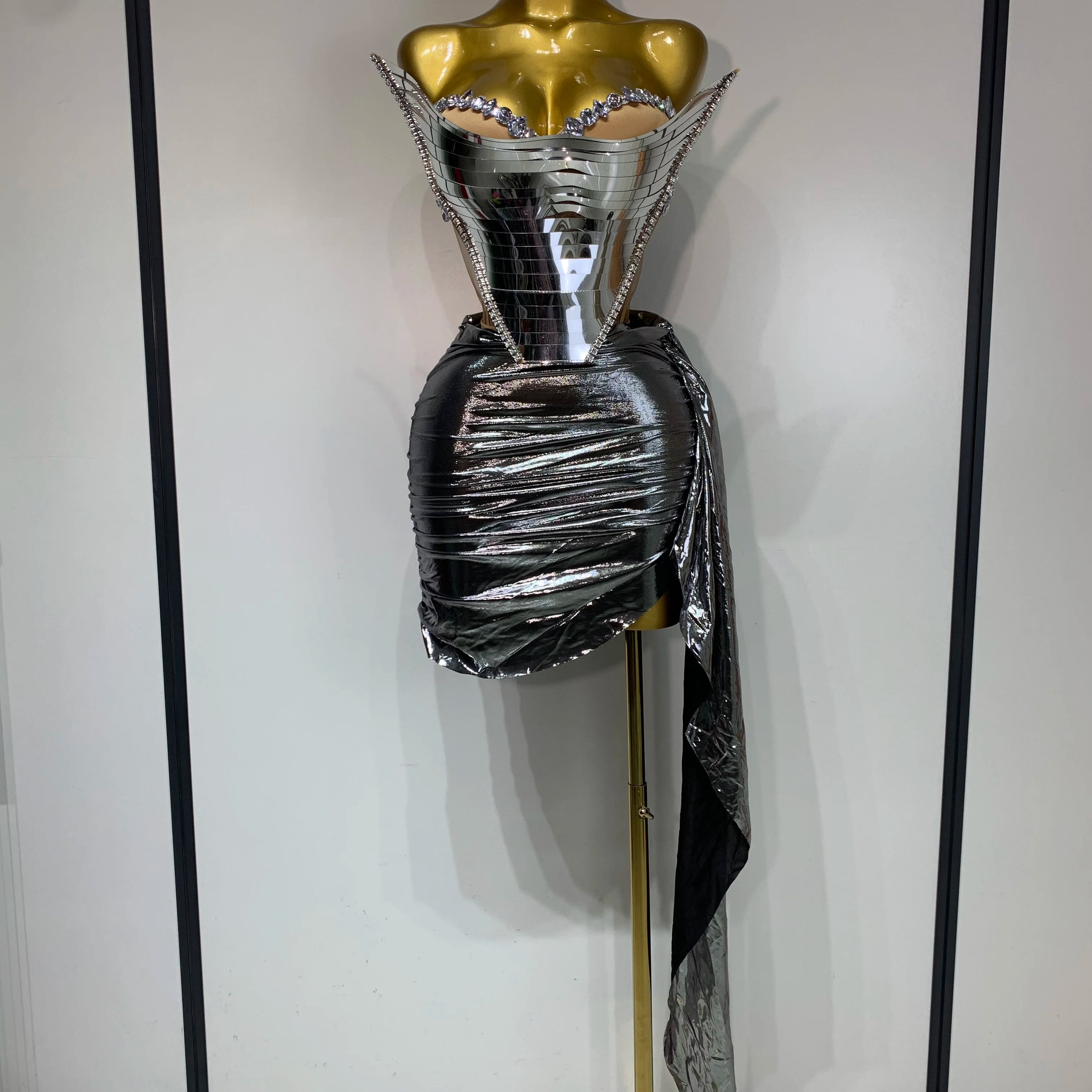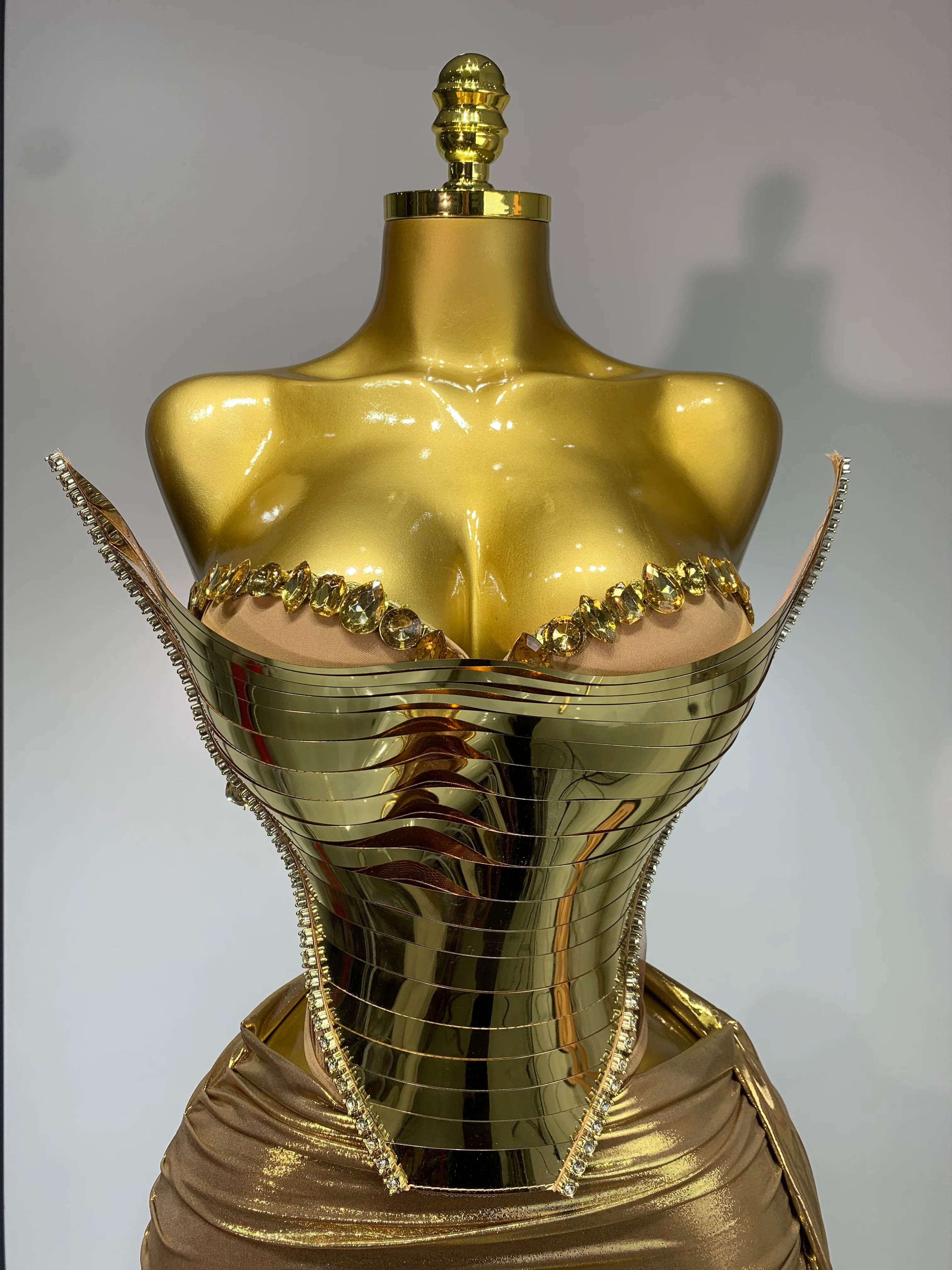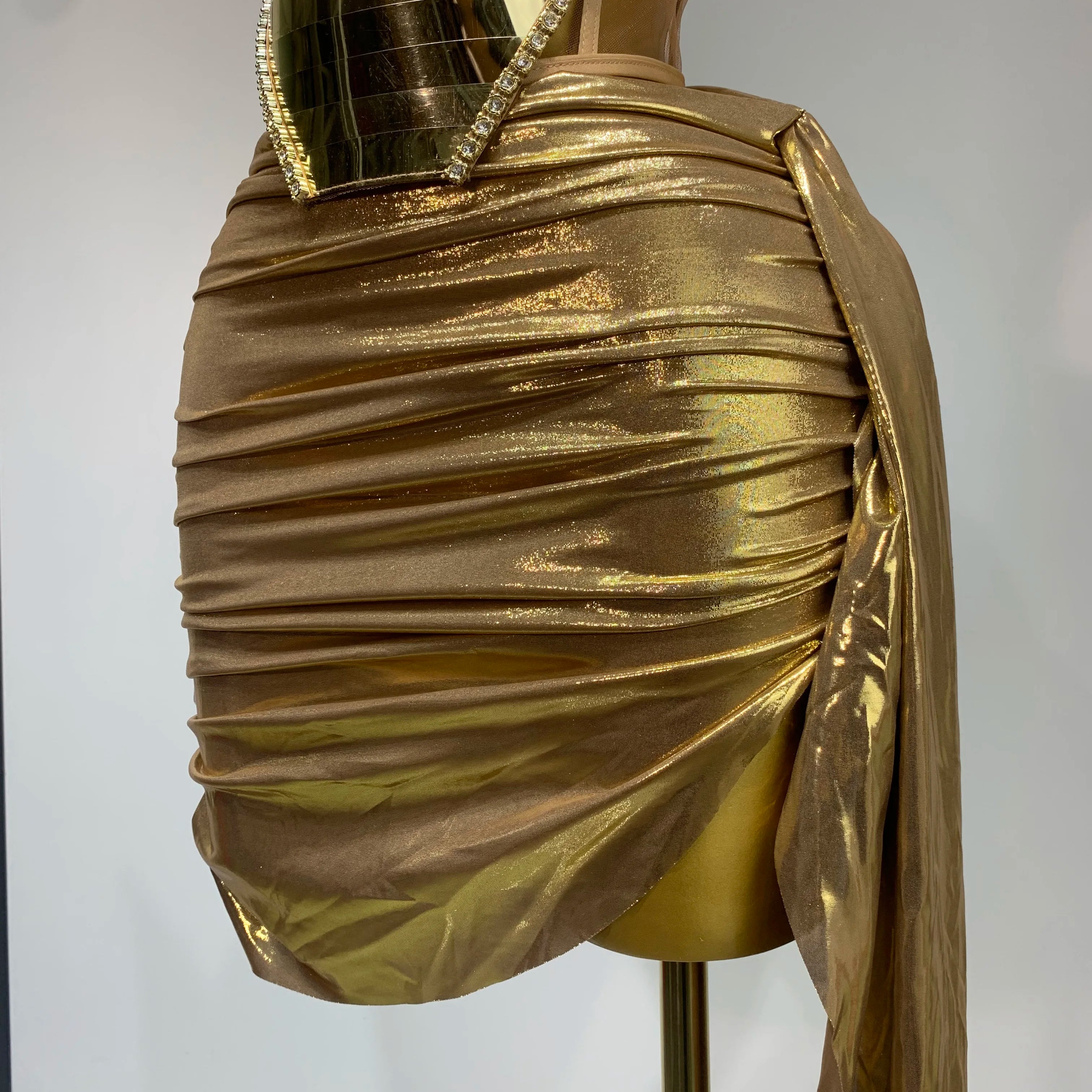 Conjunto de duas peças de top sexy com lantejoulas douradas brilhantes 2025 para mulheres, comemoração de festa, aniversário, boate, performance, dançarina, show, roupa de palco