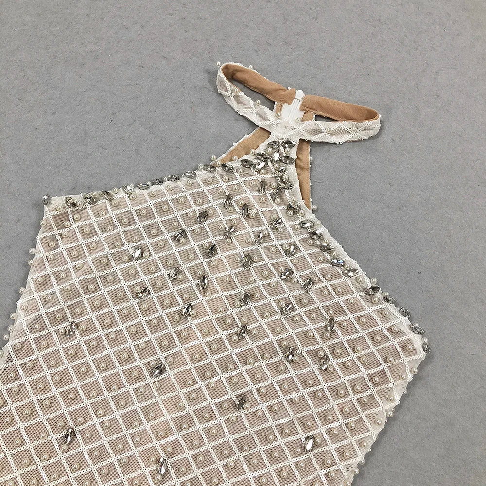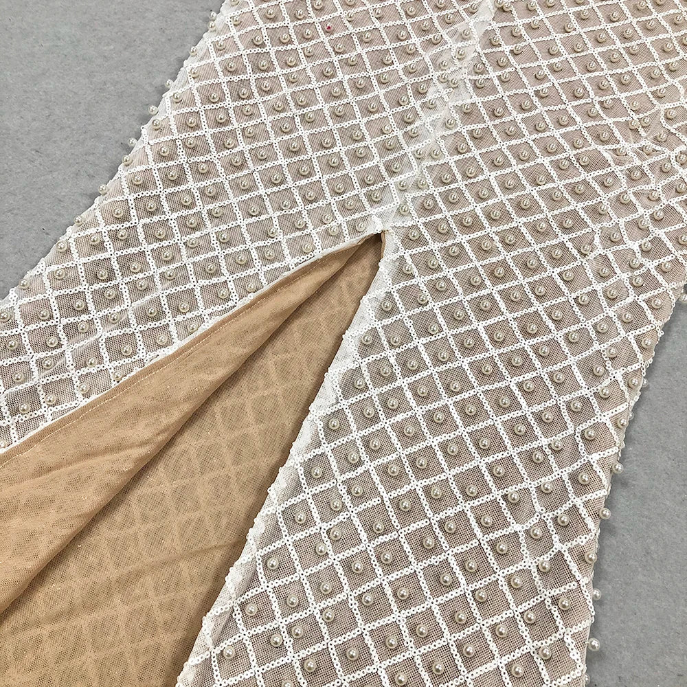 2025 Spring Sexy Women's Light Luxury Nail Bead Design Maxi Dress O-Neck Sleeveless Bodycon Tail Long Dress Club Party Vestidos