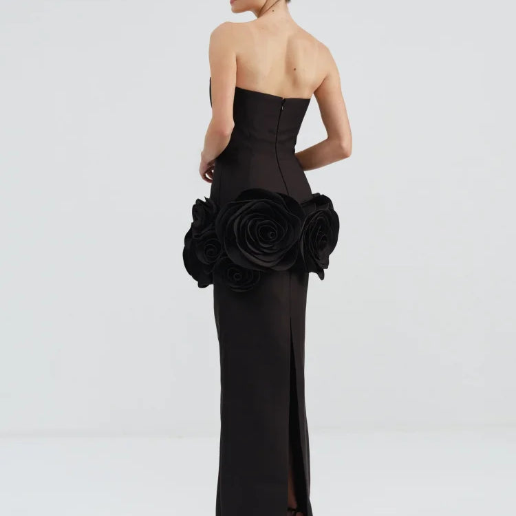 2025 Stereoscopic Flowers Strapless Bandage Ankle Length Evening Dress Fashion Woman Birthday Party Dress Celebrity Party Outfit