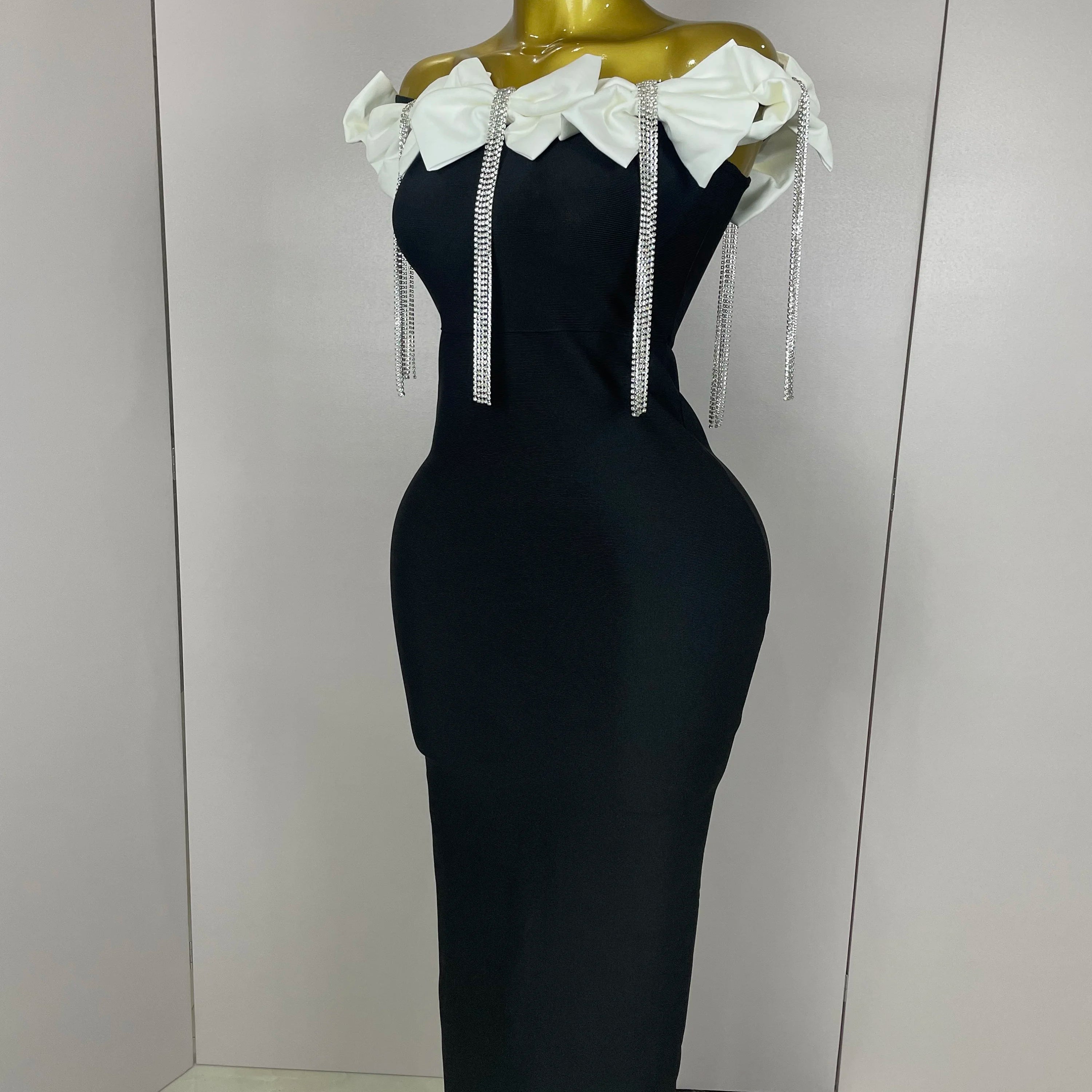 Vestido longo feminino 2025, celebridade, sexy, ombro de fora, flor, diamantes, preto, gravata borboleta, longo, tamanho XL, elegante, para festa à noite