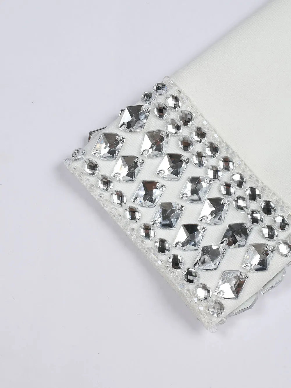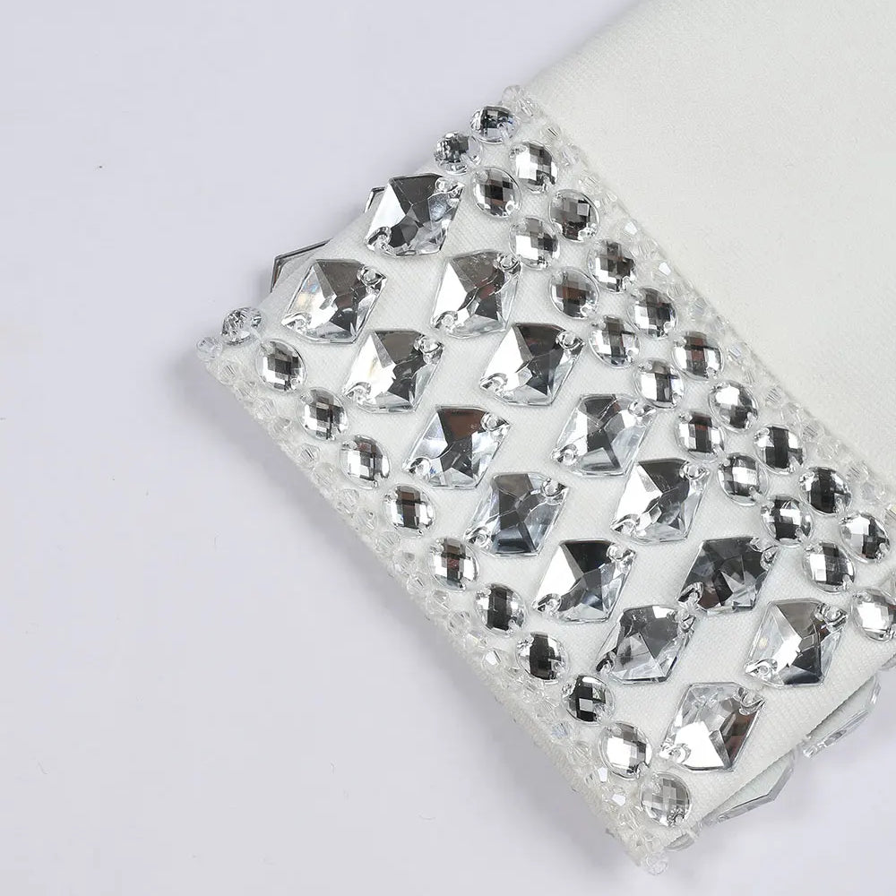 2025 Women's Light Luxury Nail Bead Bandage Short Skirt Set O-neck Long Sleeve Short cardigan Coat+Mini Skirt Two Piece Set