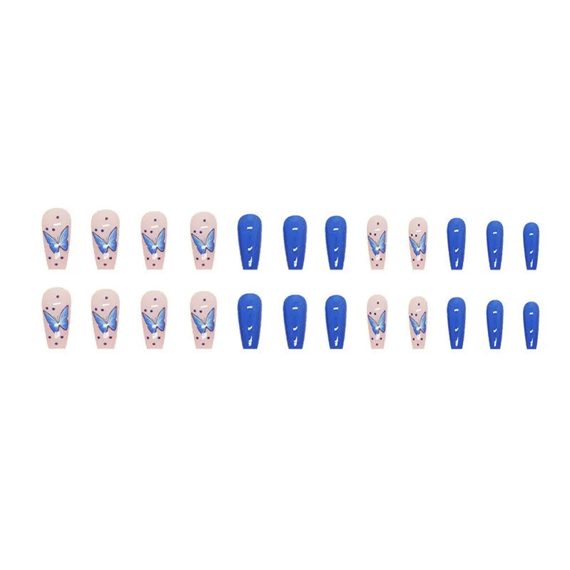 24 pcs long ballet-shaped French butterfly powder nails +1 nail glue +1 nail file