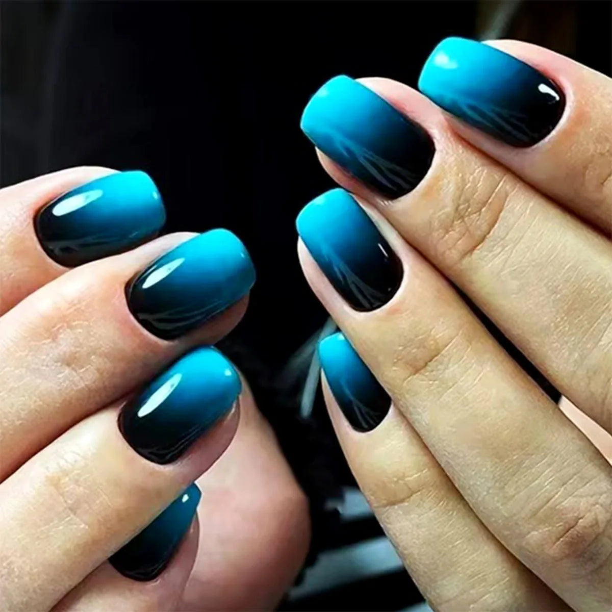 24pcs/set short square ballet fake nails gradient blue purple green pink autumn summer full cover nail tips press on false nail
