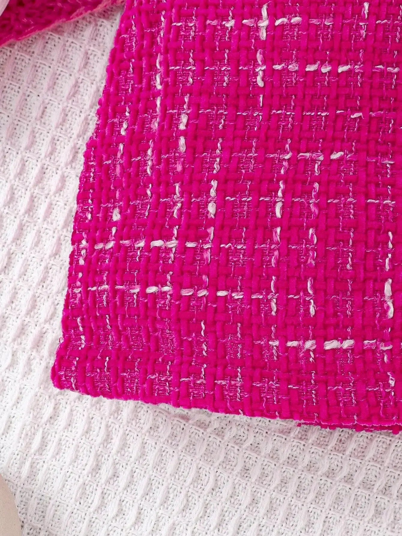 • Tipo de padrão sólido: O tipo de padrão sólido deste terno adiciona um toque de simplicidade e elegância ao guarda-roupa da sua menina.