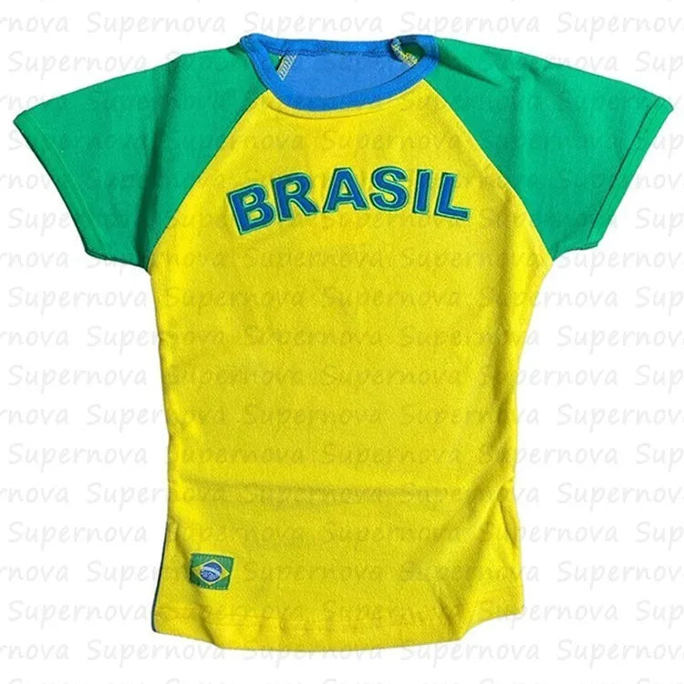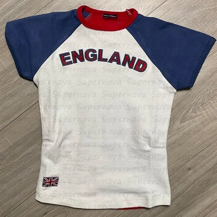 Camiseta feminina estética streetwear verão casual gótica anos 90 vintage grunge letras bordadas manga curta camiseta Y2K top curto