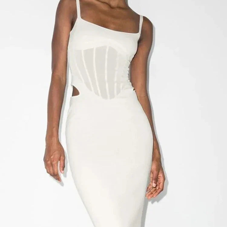Vestido midi justo sem mangas Ailigou Summer Feminino, sexy, com renda vazada, elegante, para festa de celebridades e clube