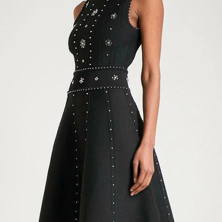 Vestido curto feminino de verão Ailigou, preto, sem mangas, com contas, sexy, elástico, de malha, elegante, para festa de celebridades