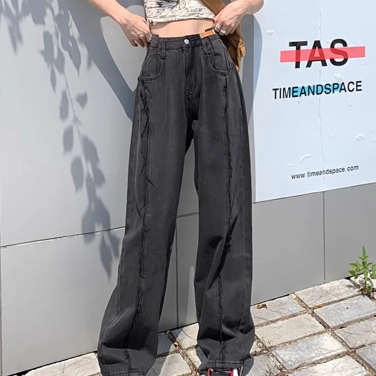 Calça jeans americana retrô de cintura alta com bolsos retos, estilo hip-hop, primavera, feminina, grunge, streetwear, casual, Y2K, calça jeans
