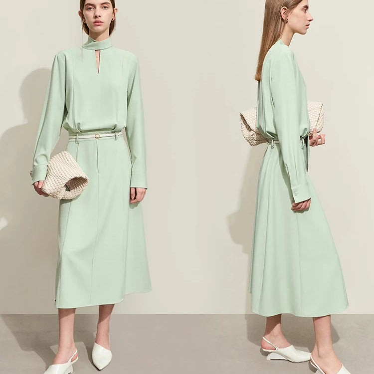 Vestidos minimalistas AMII para mulheres, primavera, chiffon, longo, decote em V, alças bordadas, slim, vestidos femininos 12441095