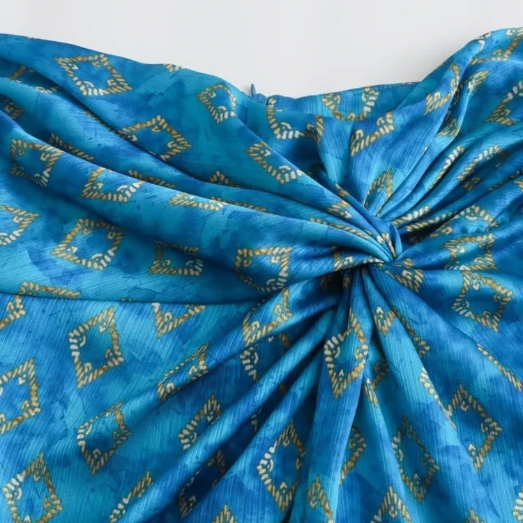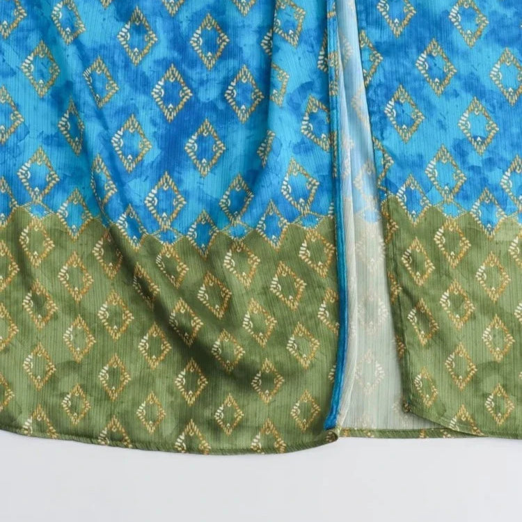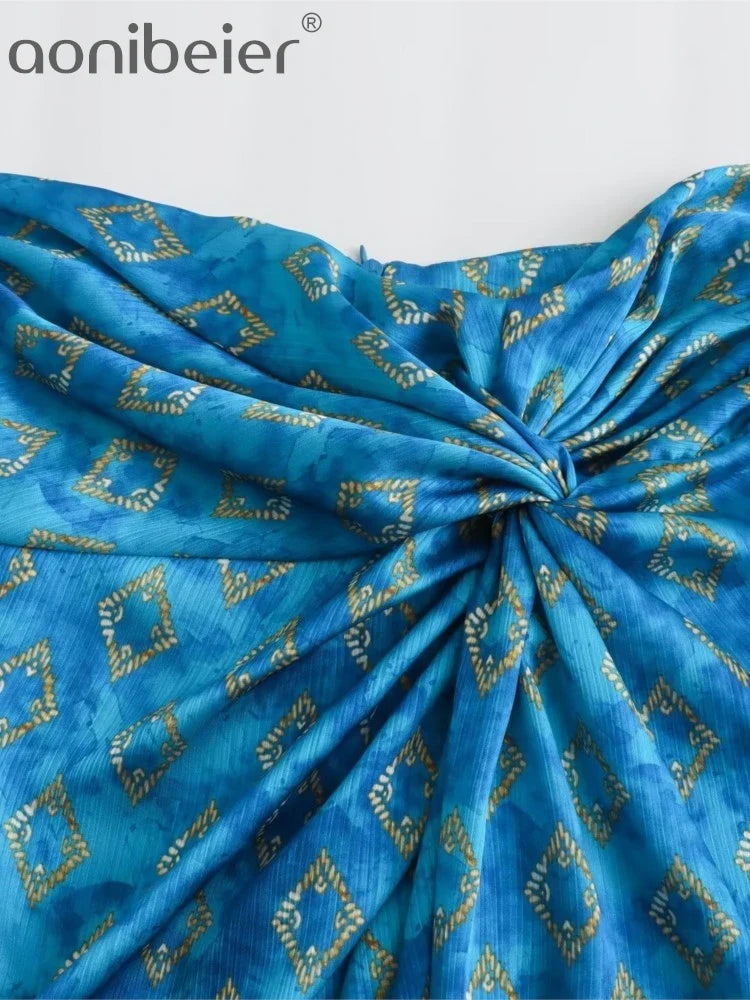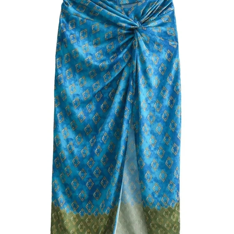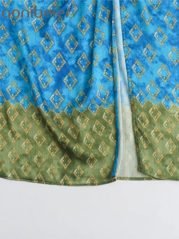 Aonibeier Saia longa feminina de cetim fino estampado patchwork Traf verão zíper cintura alta fenda frontal saia longa feminina Y2K moda praia