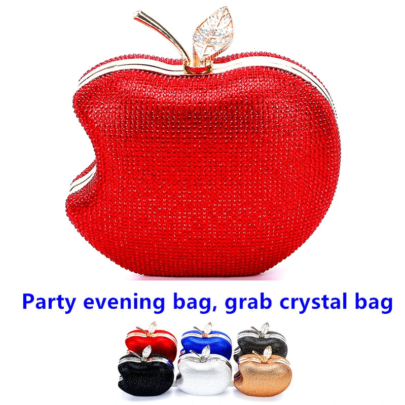 Apple forma festa de cristal mão agarrar noite mini saco pode atacado moda vermelho crossbody senhoras azul vermelho ouro