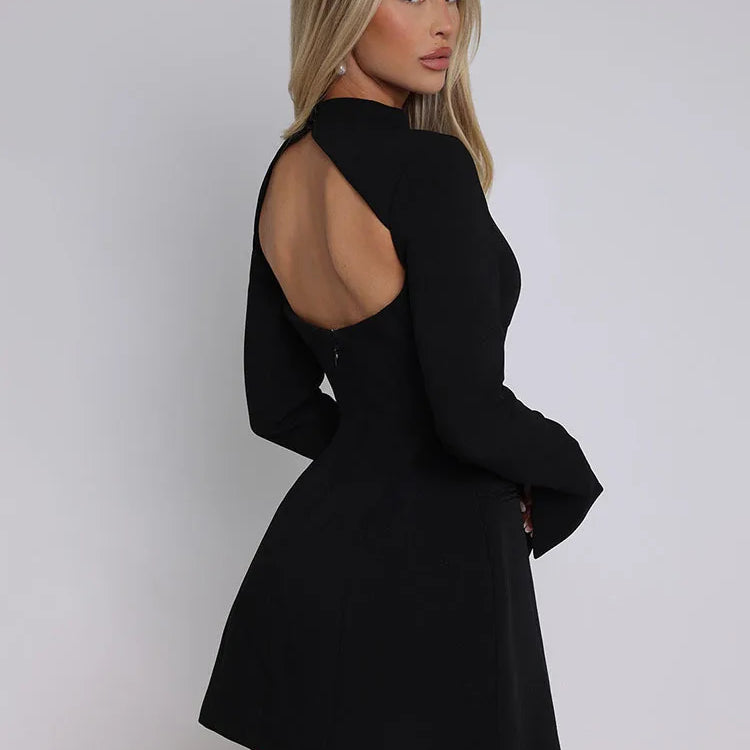 Articat Elegante Manga Longa Bodycon Vestido Feminino Sexy Slim Sem Costas Mini Vestido Outono e Inverno 2025 Vestido de Festa à Noite