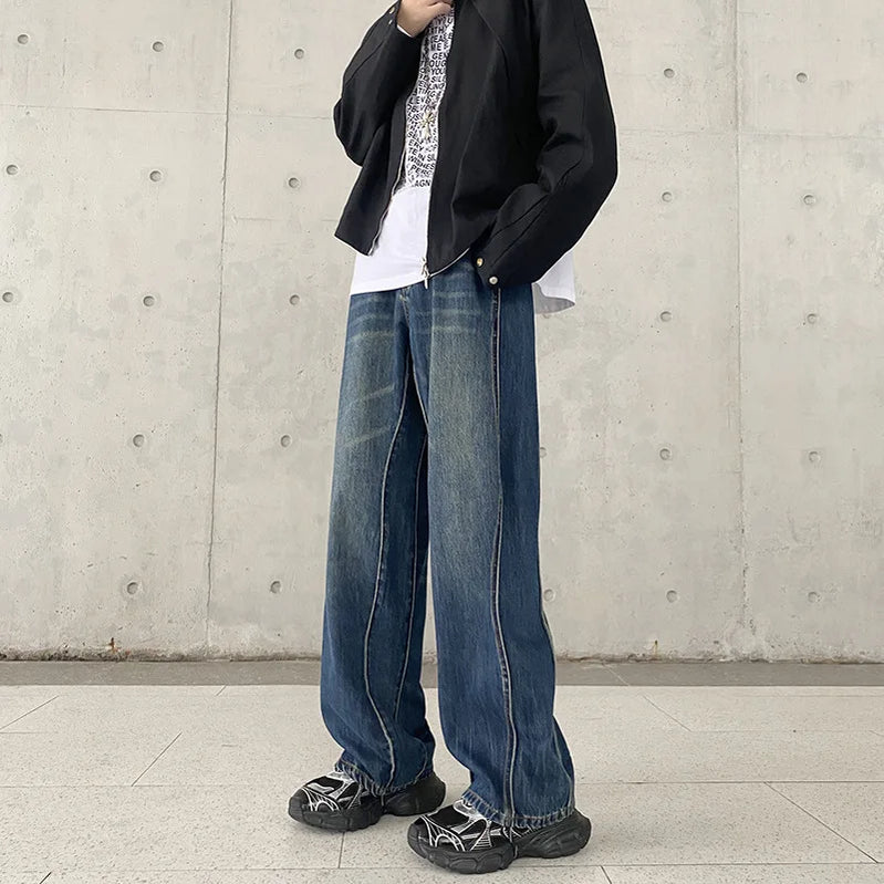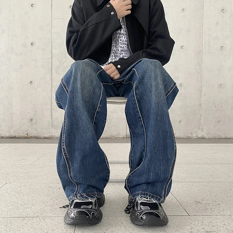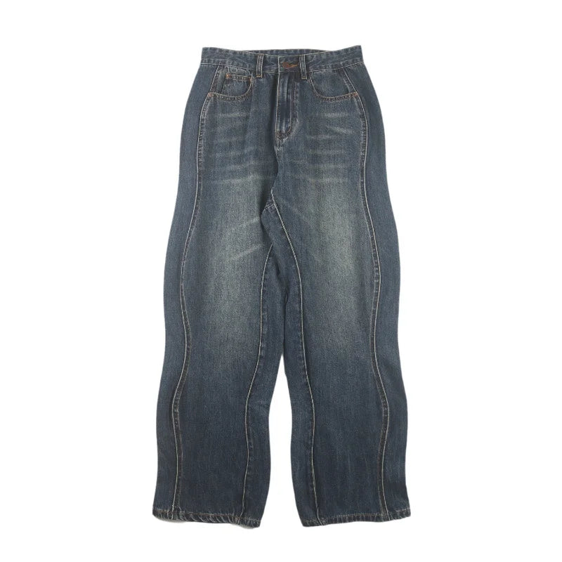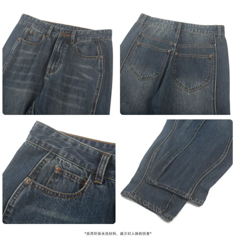 Outono e inverno estilo americano na moda marca irregular curva corte jeans reto solto all-match calças compridas
