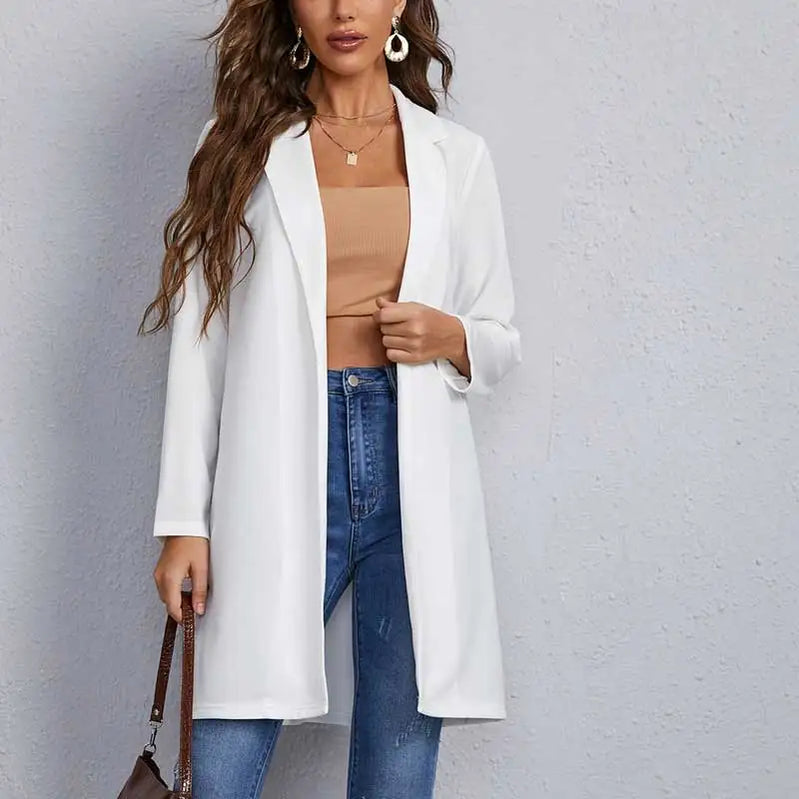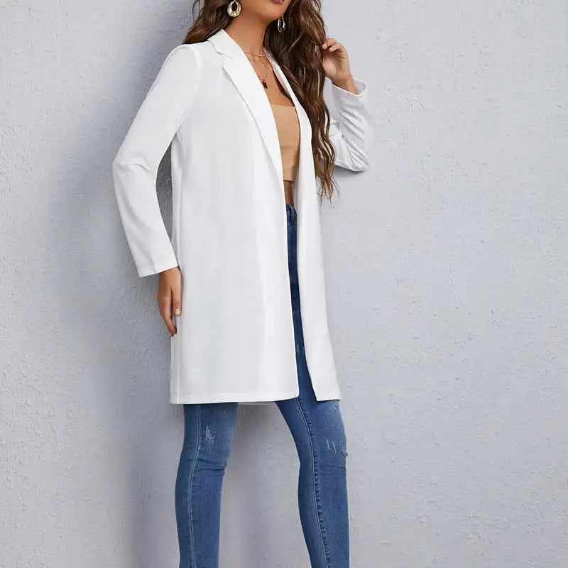 Casaco feminino de outono e inverno, moda para deslocamento, cor sólida, manga comprida, cardigan, casaco de gola longa