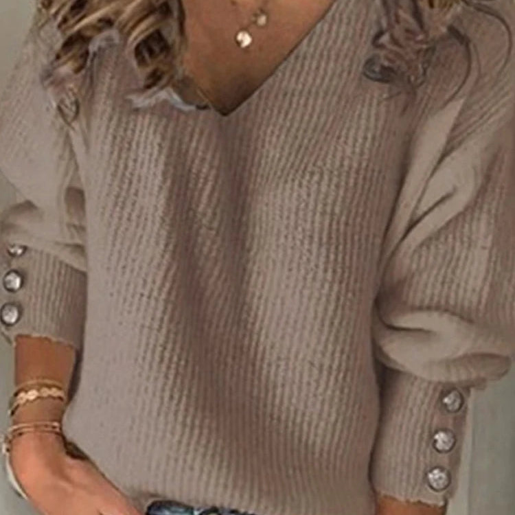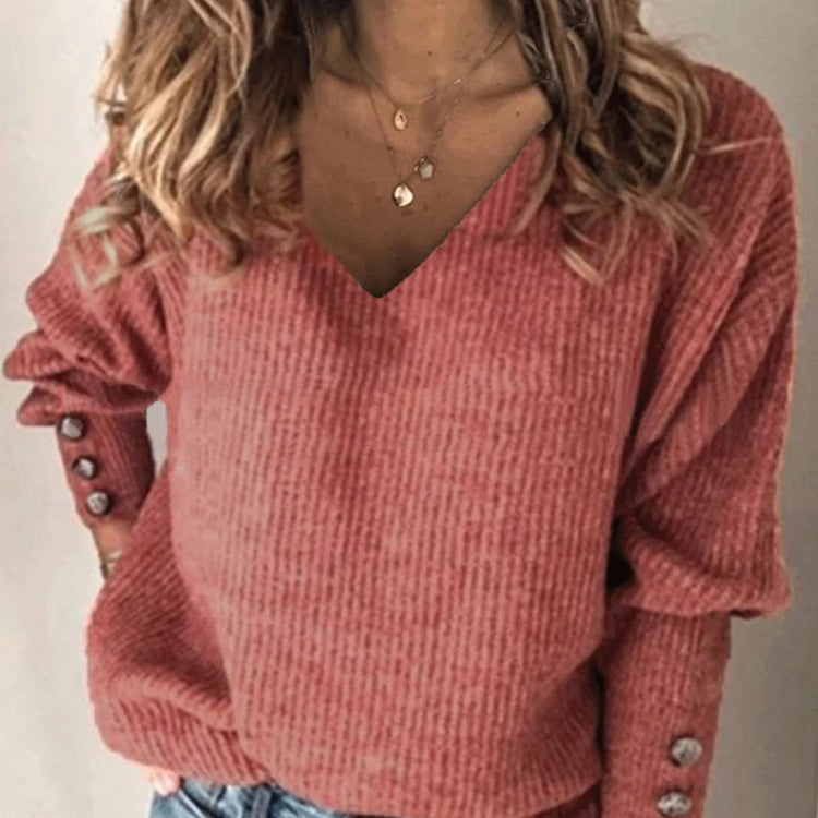Outono solto com decote em v manga comprida camiseta feminina sólida malha básica camisola de fundo oversized topo com nervuras macio elástico pulôver