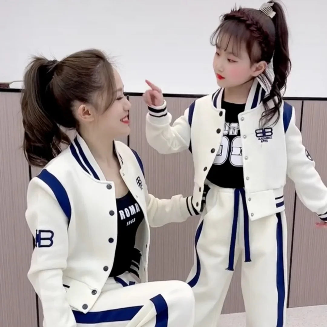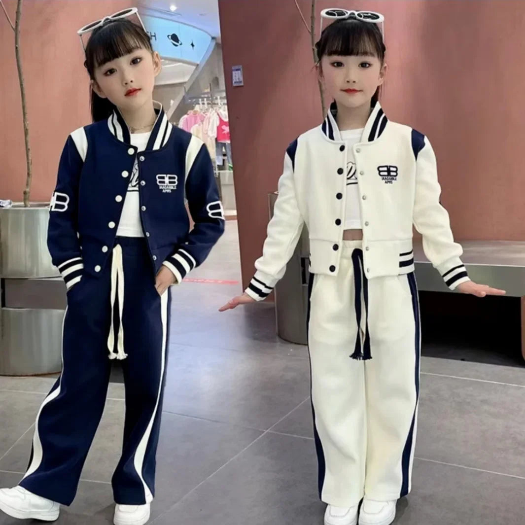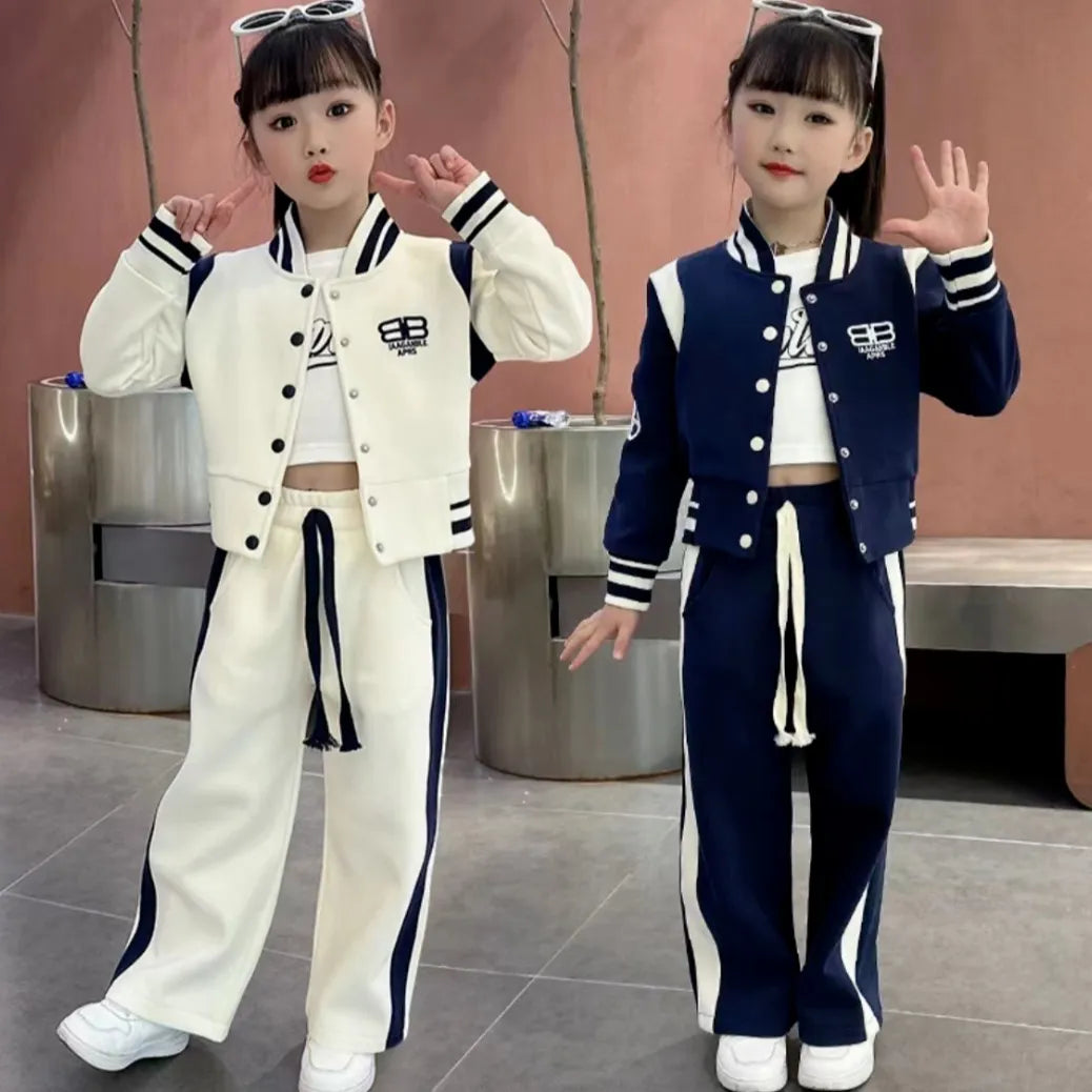 Outono inverno criança meninas roupas camisa de beisebol terno esportivo crianças roupas menina carta casaco calças compridas 2 peça conjunto 3-13 anos