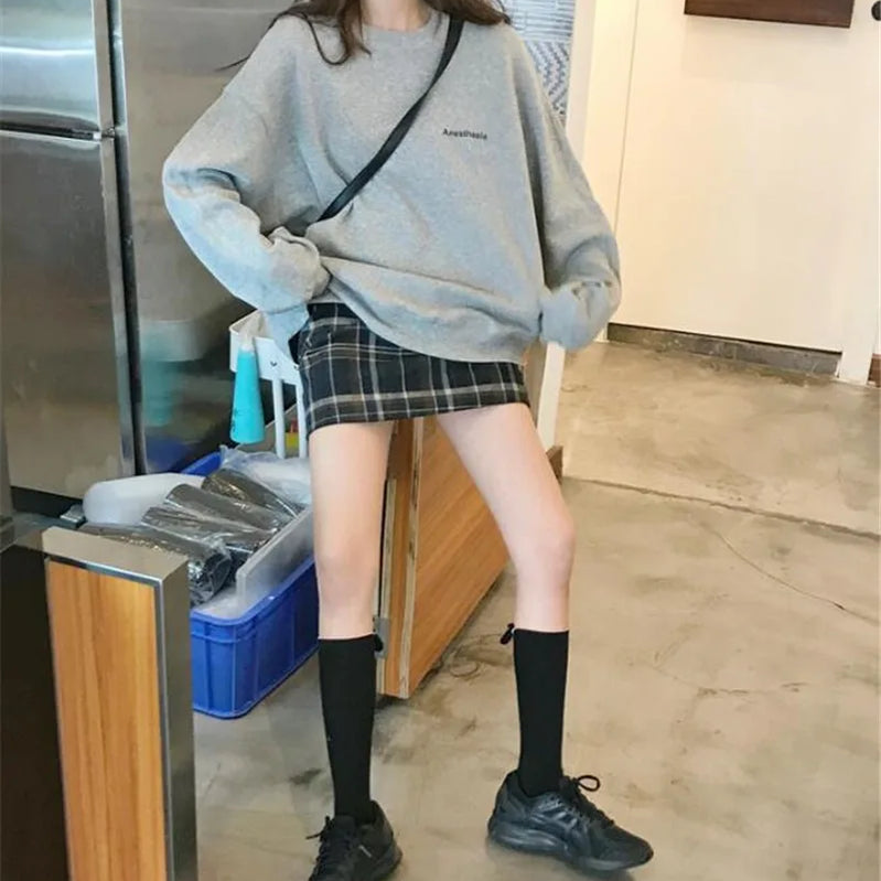 Suéter estilo academia minimalista com letras harajuku, manga comprida, gola redonda, sem chapéu, versão coreana outono/inverno