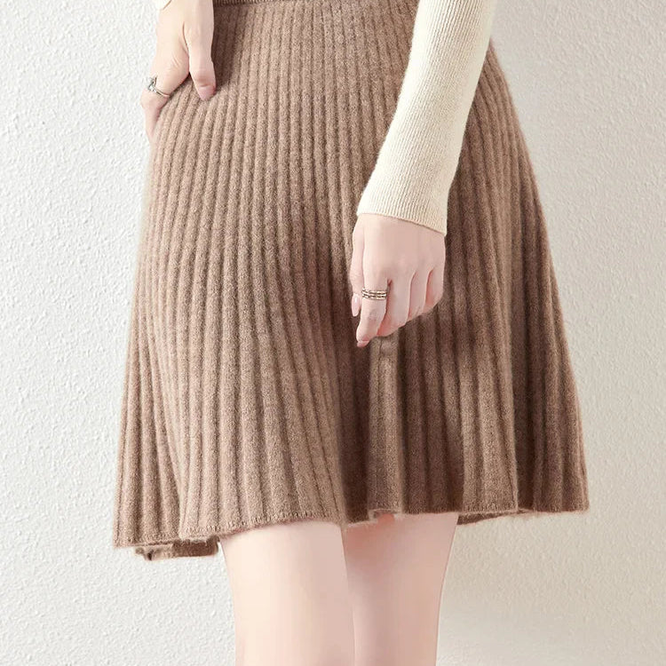 Outono/Inverno 100% lã saia curta plissada cintura cincher emagrecimento malha saia inferior bolsa feminina nádegas saia guarda-chuva