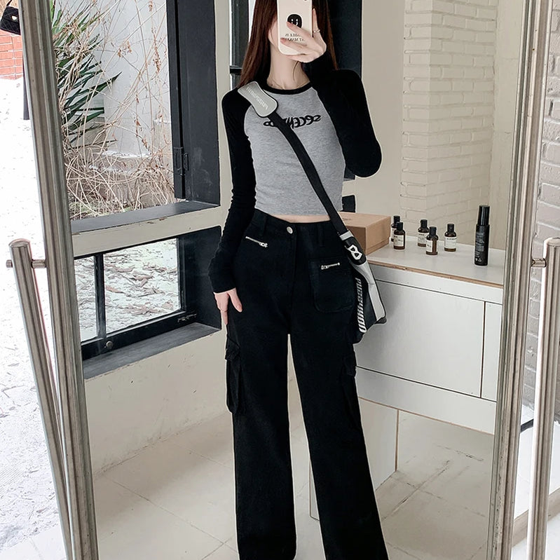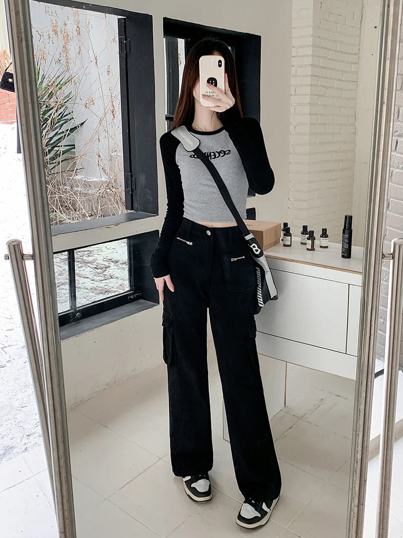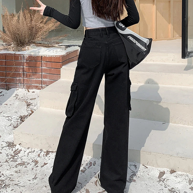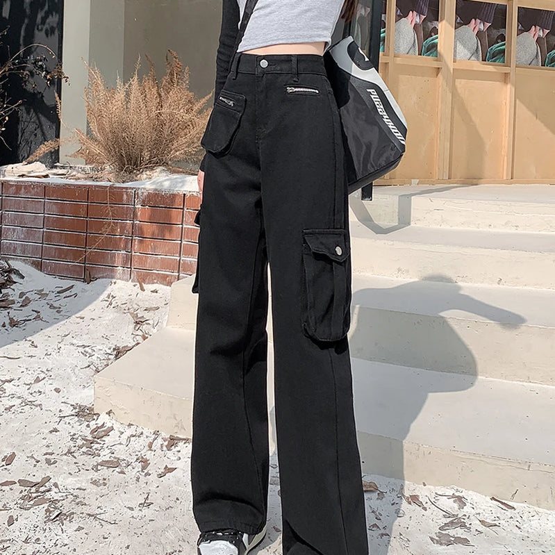 Calça jeans cargo feminina, estilo americano, estilo high street, reta, estilo tubo, para mulheres, versátil, jeans largo, estilo Y2K