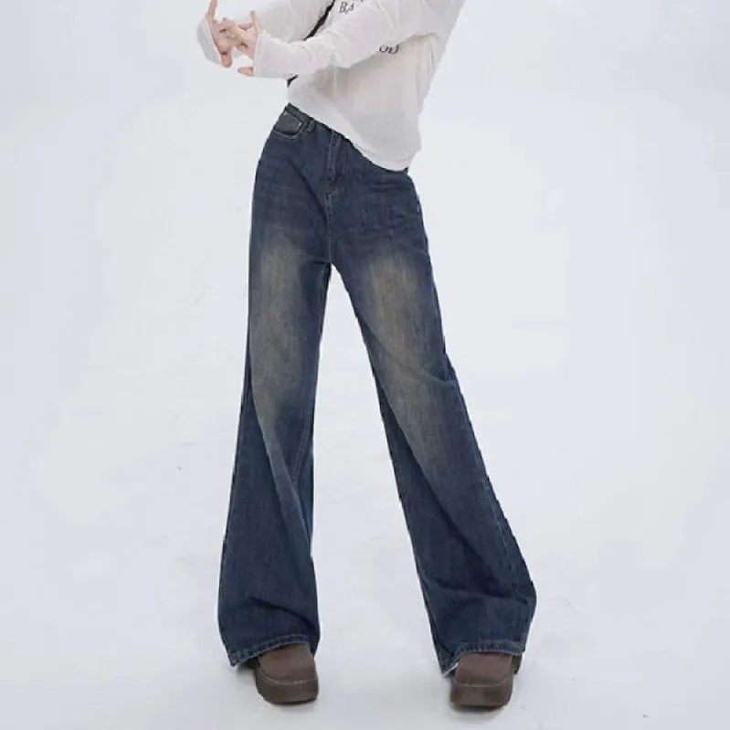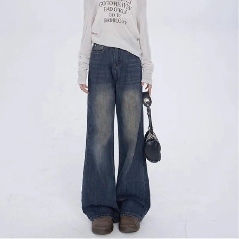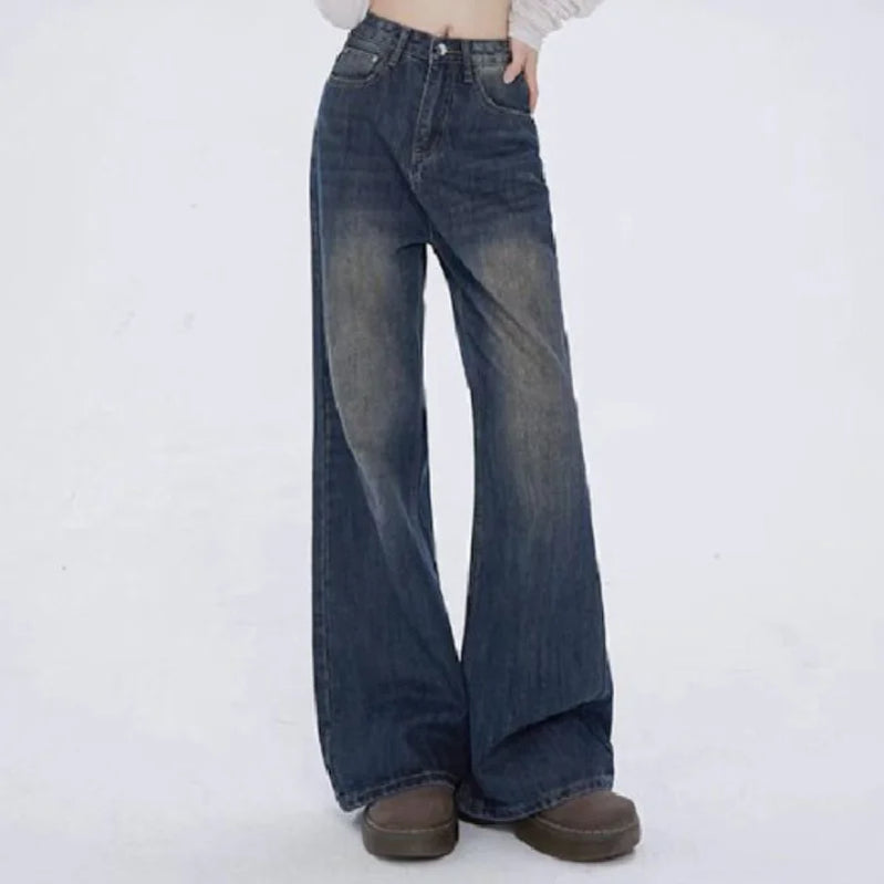 Calça jeans feminina de cintura alta, estilo retrô americano, perna larga, moda feminina, versátil, jeans largo Y2K, outono e inverno