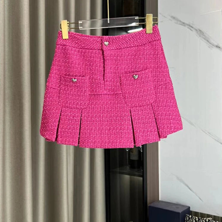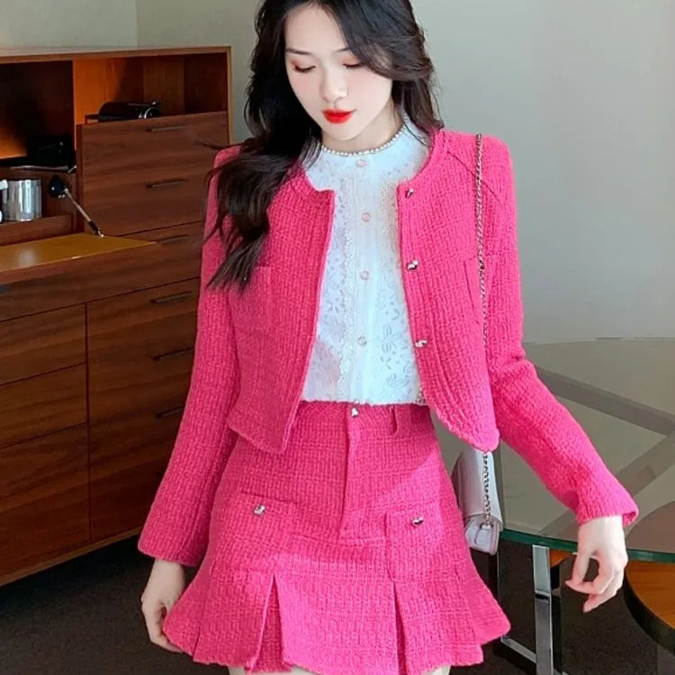 Outono inverno tweed 2 peça conjunto para as mulheres curto de lã tweed jaqueta casaco + bodycon mini saia conjunto mulher roupas de duas peças