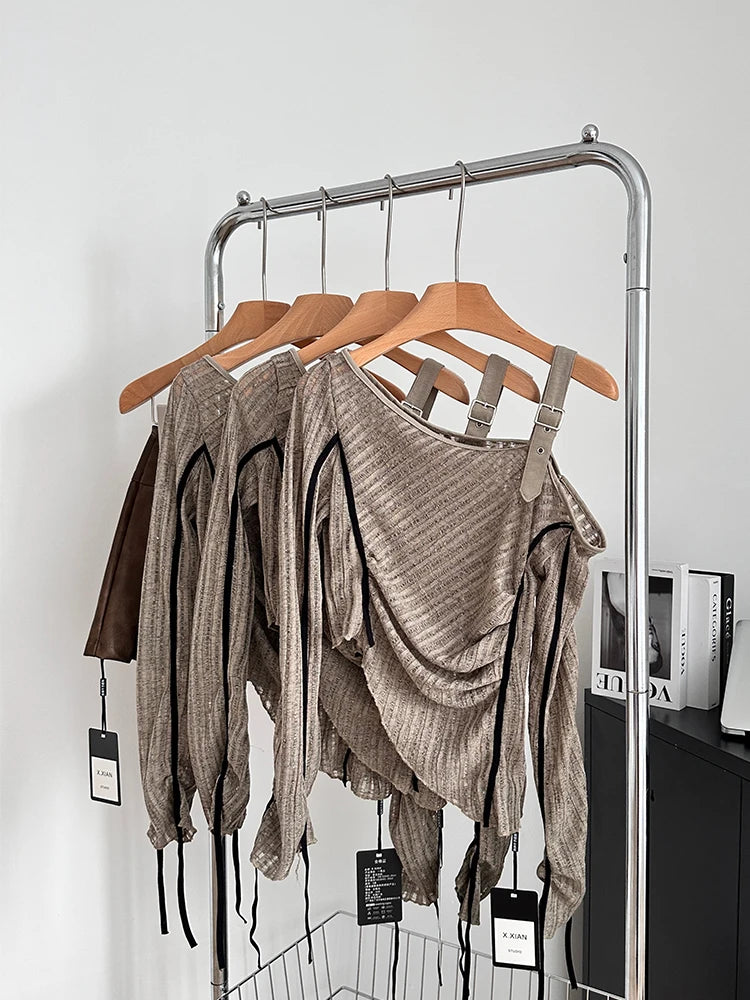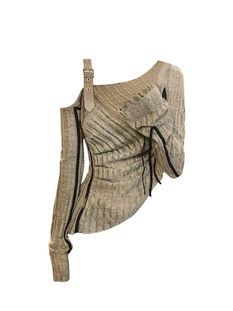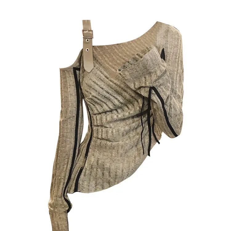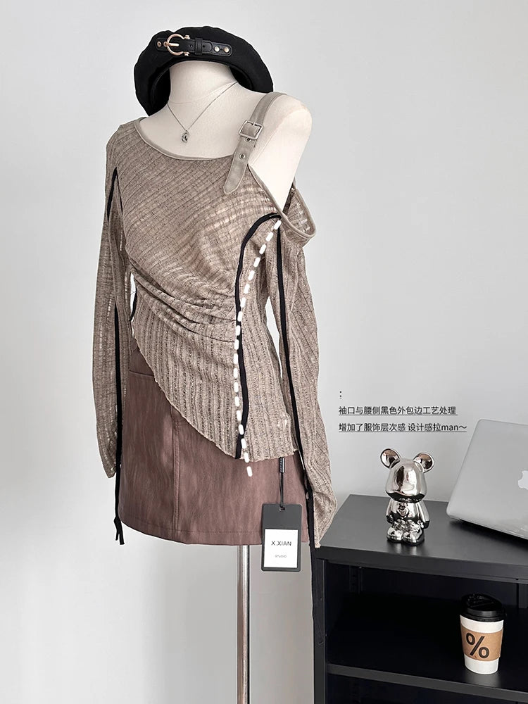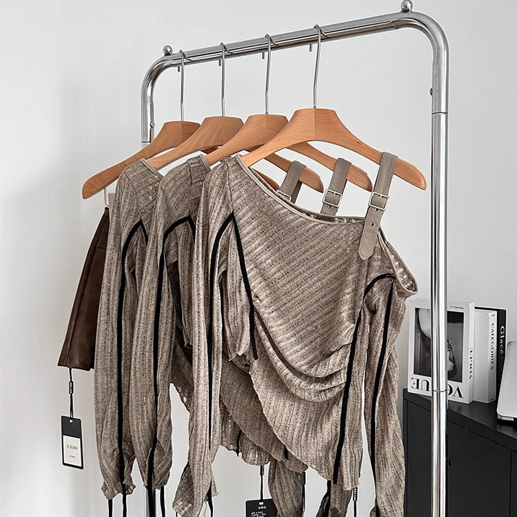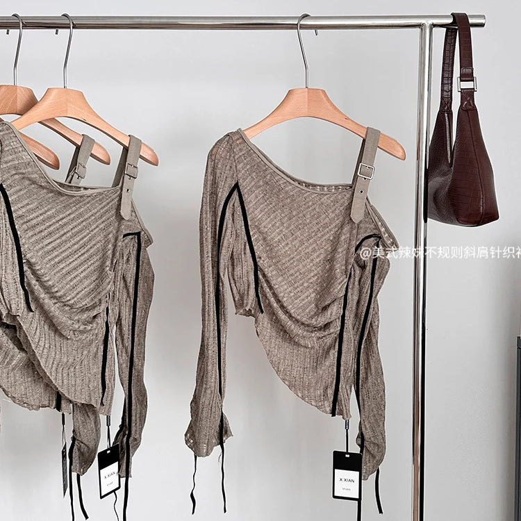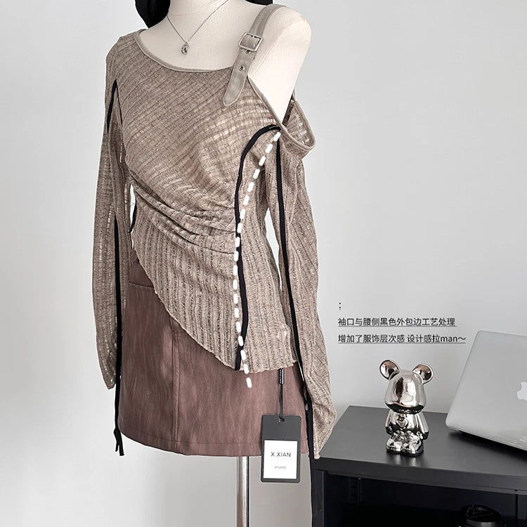 Outono mulher design irregular jerseys gyaru manga longa recortada tops slash neck pullovers y2k streetwear 2000s estética vintage