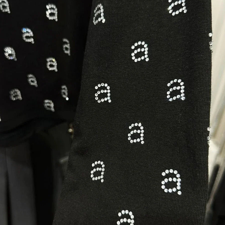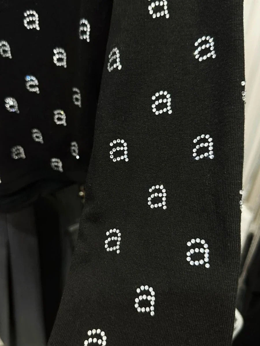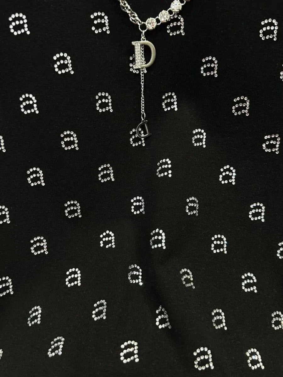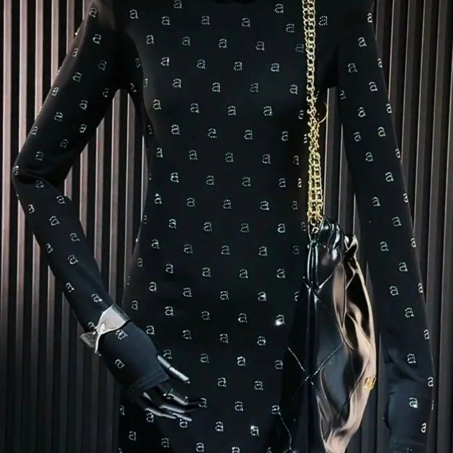 AW Wang Diamond A Letter Slim Fit Stretch Preto Manga Longa Saia Curta Para Mulheres Vestido de Festa À Noite Vestidos Midi Roupas