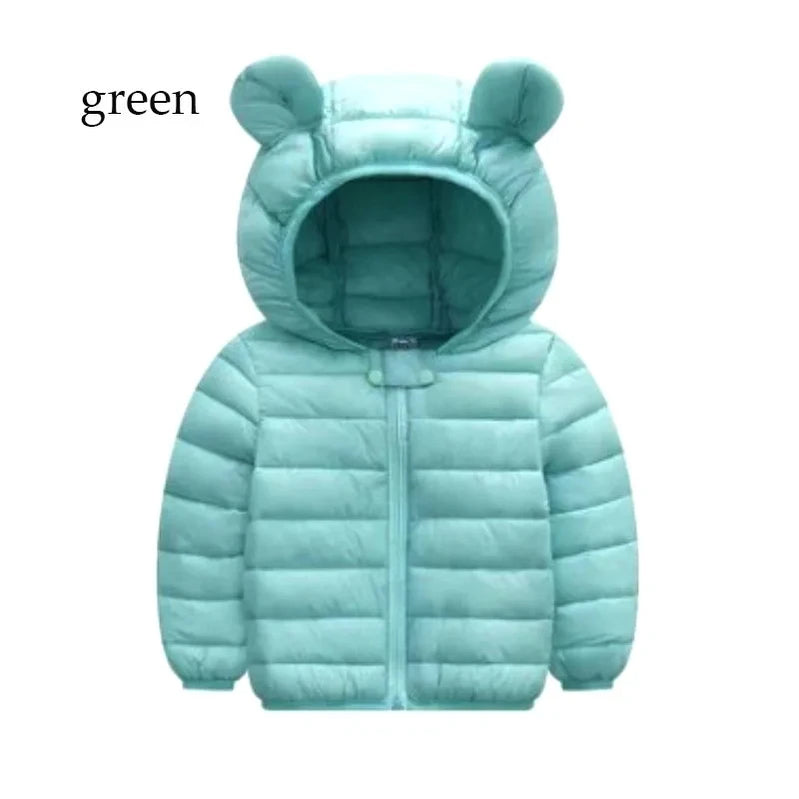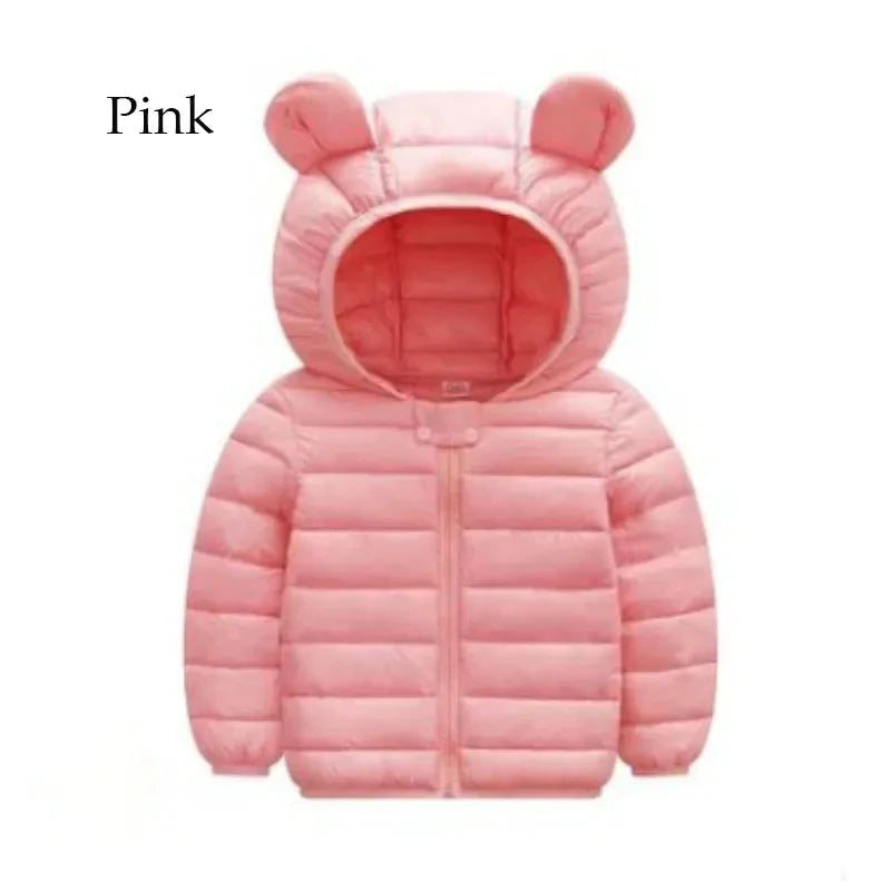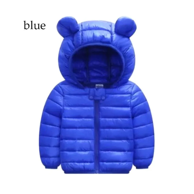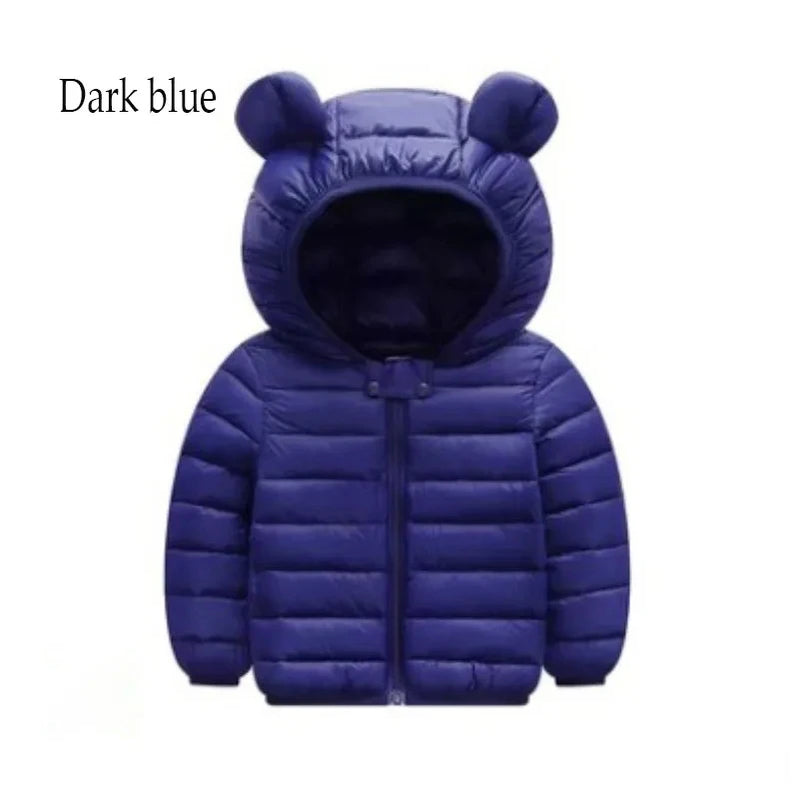 2-5 anos de idade menino menina jaqueta de inverno para baixo jaqueta cor sólida grosso quente com capuz moda design dos desenhos animados roupas infantis de alta qualidade