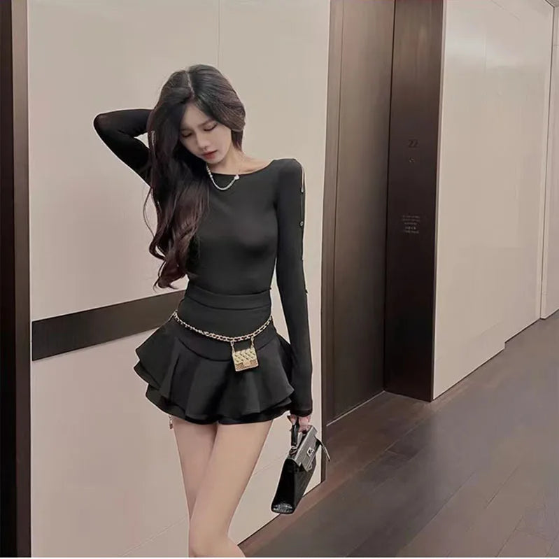 Saia de baile feminina, moda verão, elegante, assimétrica, com babados, sólida, mini saia coreana, cintura alta, sexy, combinando, saia evasê