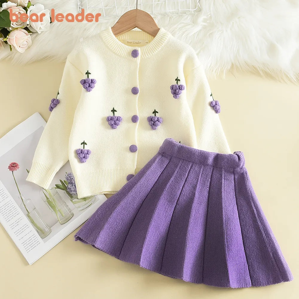 Conjunto de roupas para bebês meninas Bear Leader, outono inverno, desenho animado, uva, conjunto de roupas infantis, malha, roupa doce, conjunto de roupas infantis