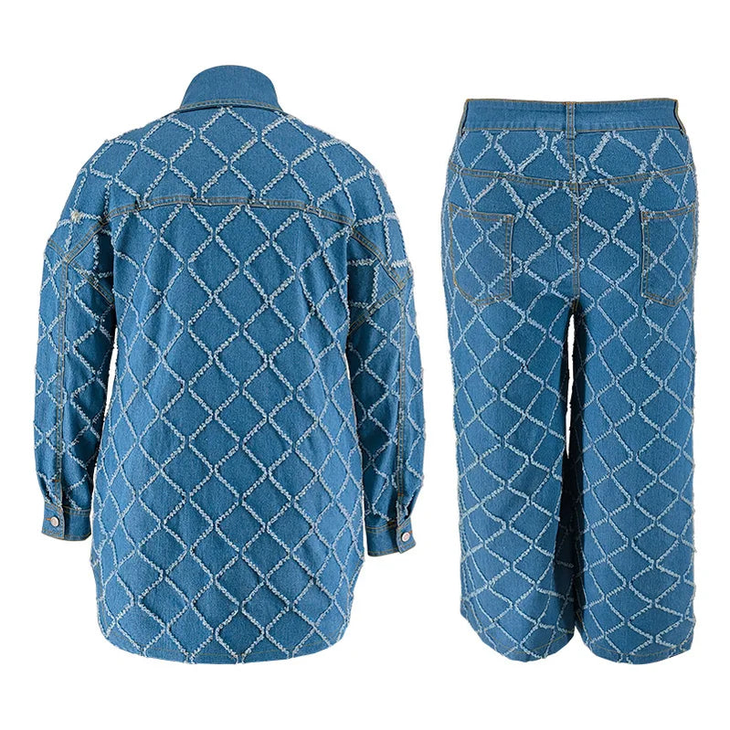 Benuynffy Plus Size Long Sleeve Single Breasted Denim Shirt Jacket And Wide Leg Jeans 2 Piece Sets Woman Outfit Casual 2025 New