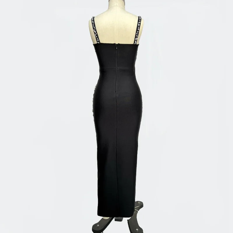 Black Color Celebrity Fashion Red Carpet Evening Dress Women Sleeveless Strap Shinning Crystal Bodycon Long Bandage Maxi Dress