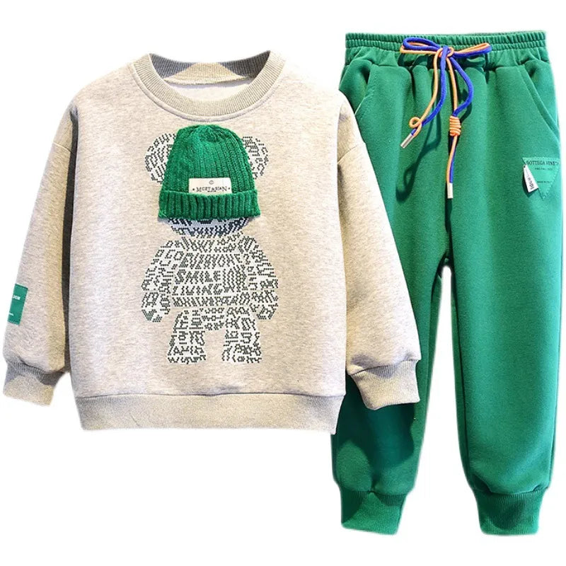 Meninos e meninas conjunto de roupas crianças com capuz outerwear topos calças 2 pçs roupas crianças adolescente traje terno primavera outono tendência