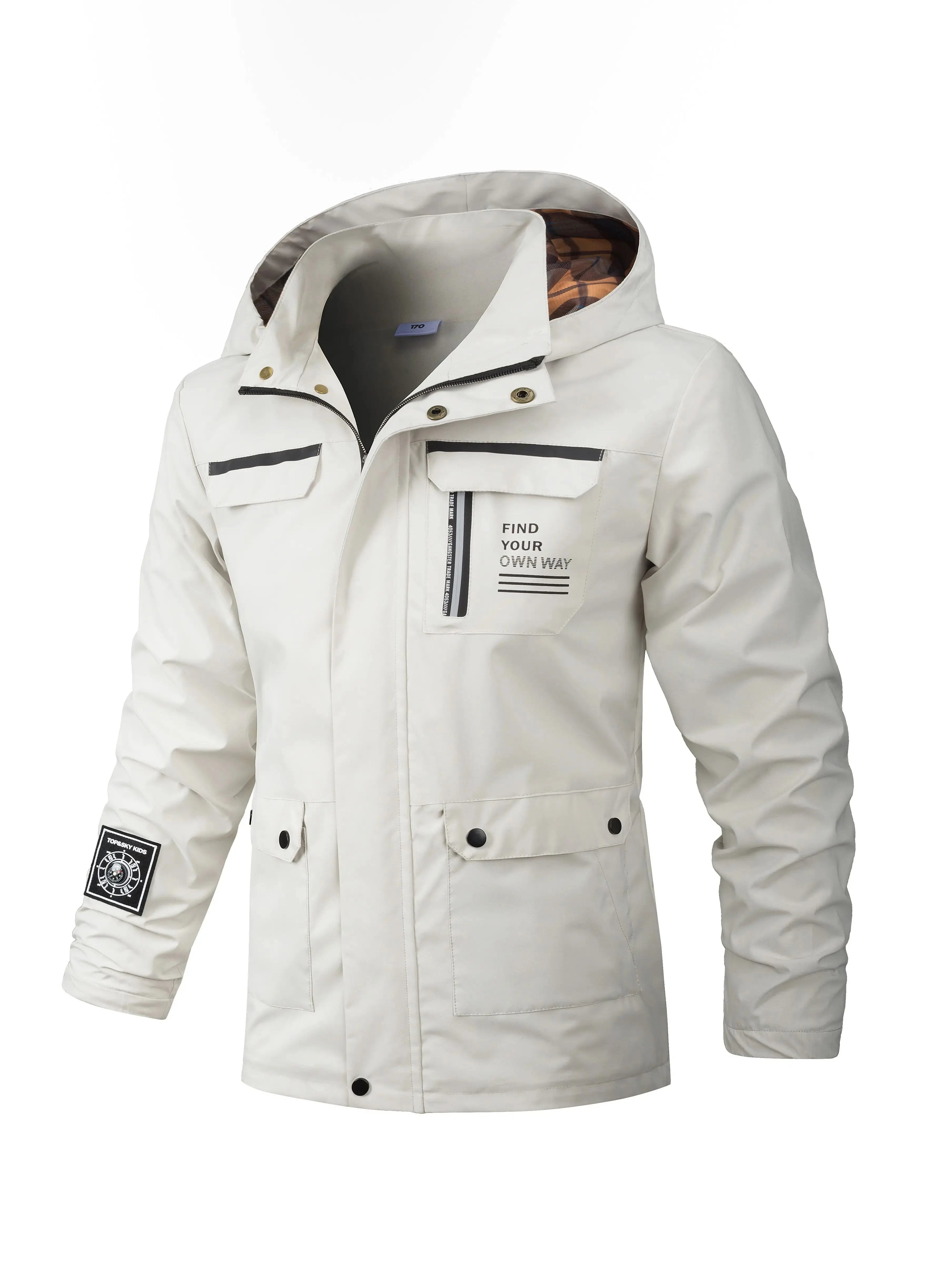 Jaqueta impermeável para meninos, capa de chuva à prova de chuva com bússola e chapéu removível, jaqueta leve à prova de vento