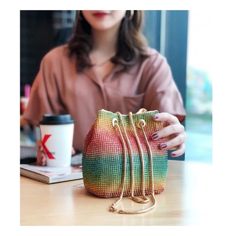 Bolsas femininas da moda para noite, com diamantes, arco-íris, macias, para o dia, com alça de ombro, corrente de cobra, strass, para festa, bolsa de casamento