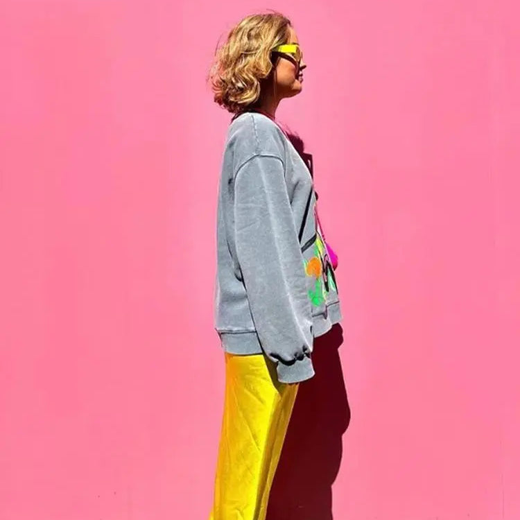 Contraste dos desenhos animados impresso sweatshirts feminino solto o pescoço manga longa pullovers feminino outono moda casual senhoras topo
