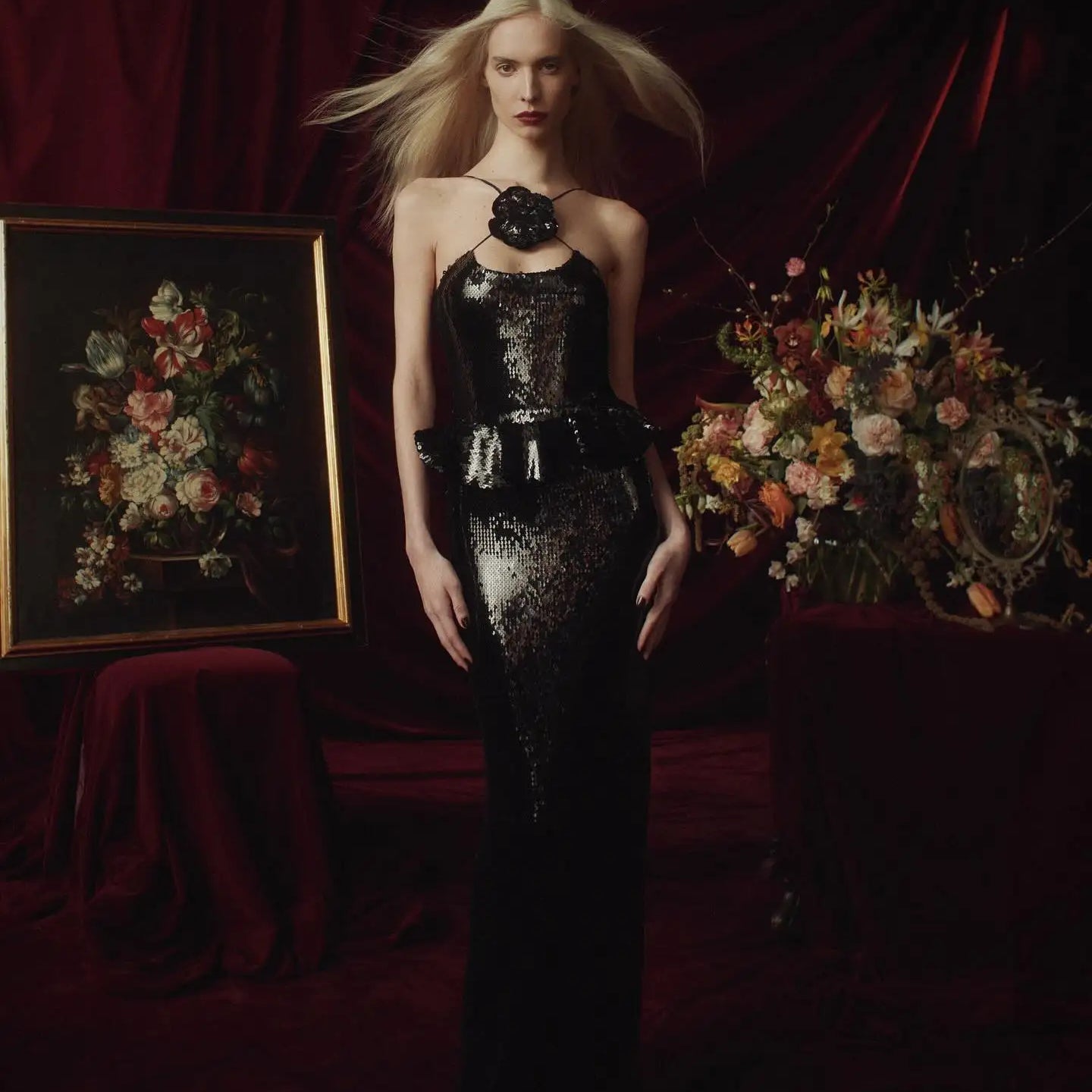 Vestido de celebridade para tapete vermelho, cor preta, com lantejoulas brilhantes, sexy, frente única, bodycon, vestido longo para festa à noite