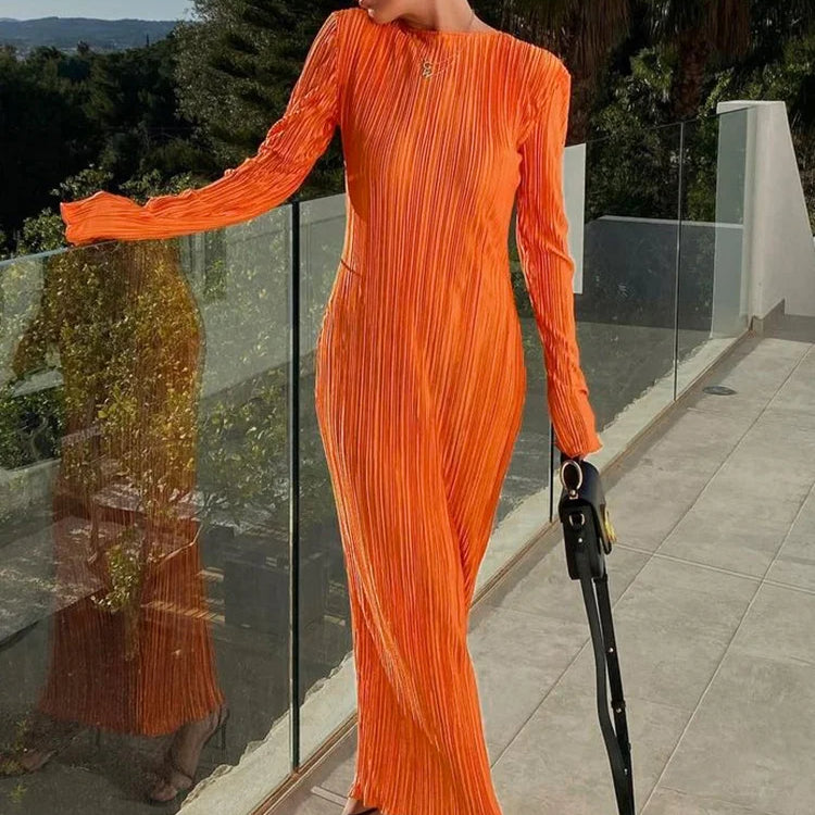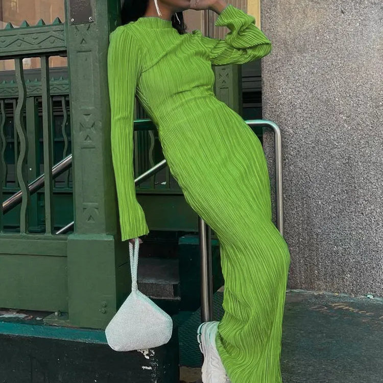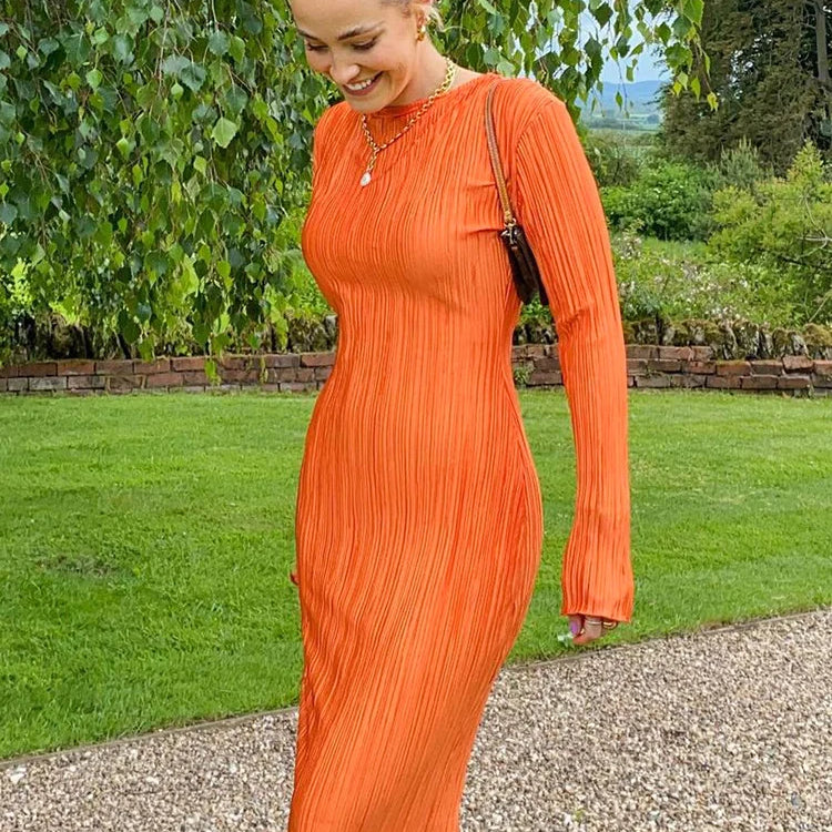 Autumn Striped Ruched Ruffle Sexy Y2K Clothes Long Sleeve Bodycon Midi Dresses For Women Club Party Elegant Outfit