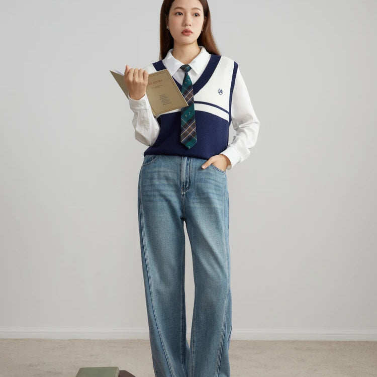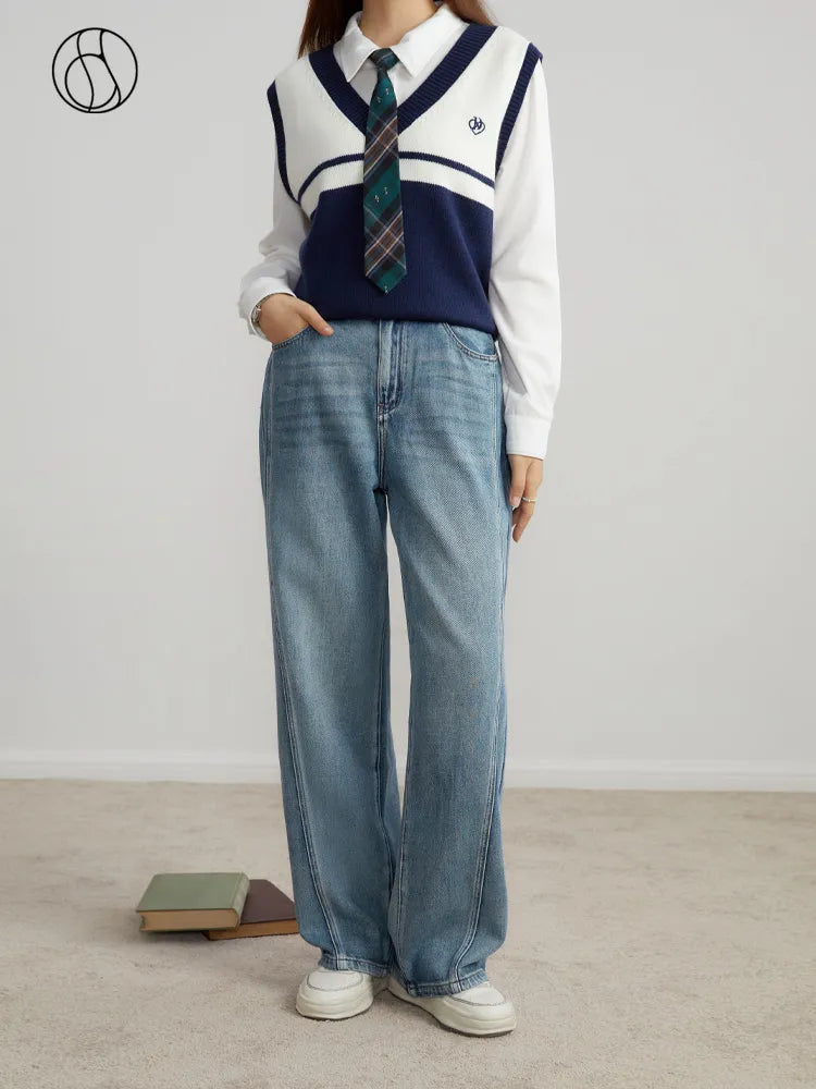 Calça jeans feminina casual de cintura alta e algodão, estilo reto, para outono, combinando com todas as calças jeans femininas
